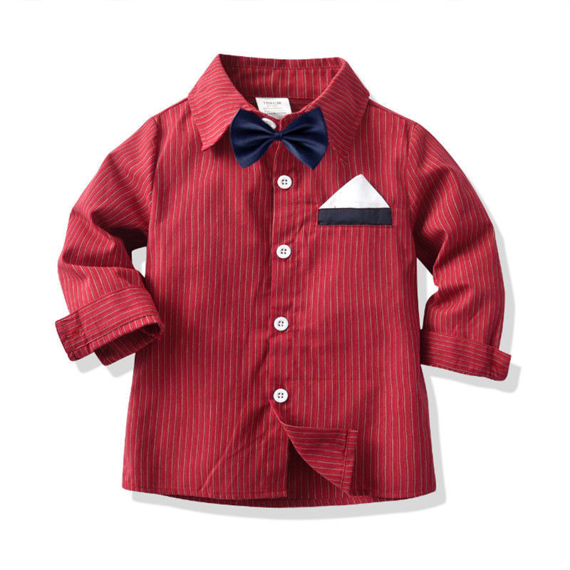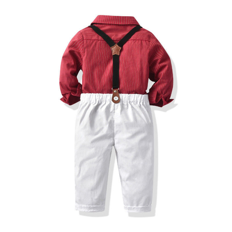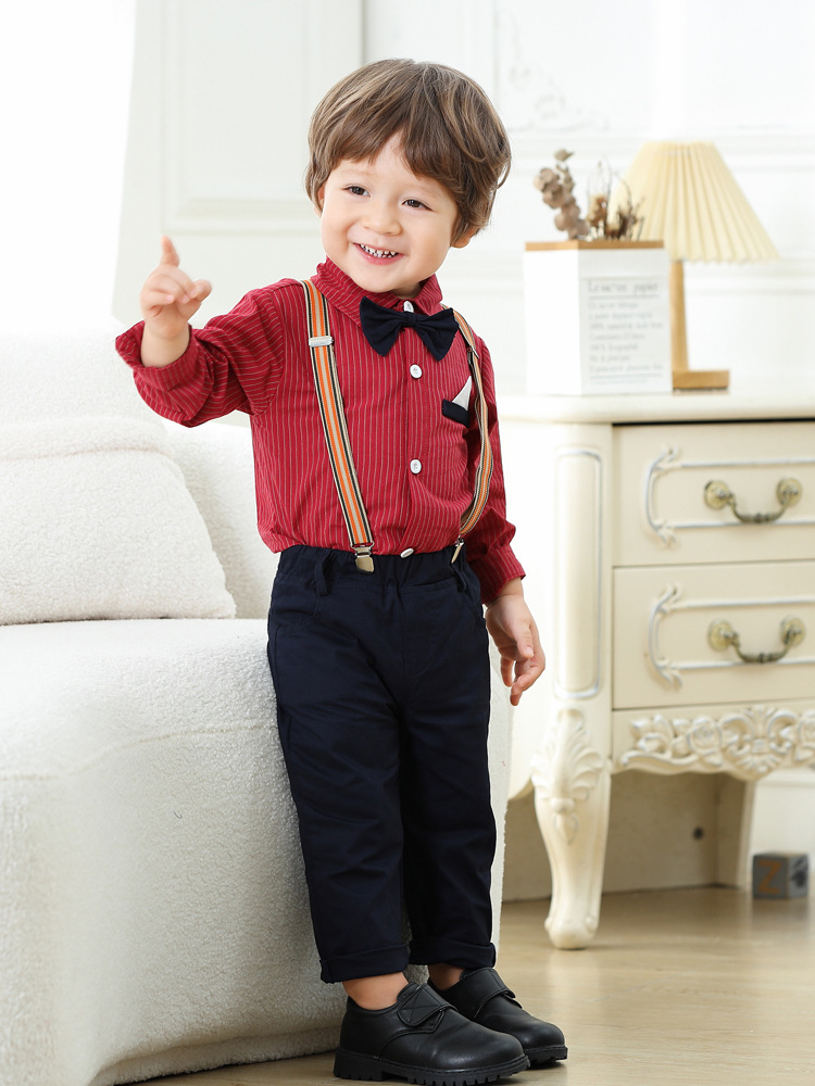 크로스 보더 유럽과 미국 소년 신사의 봄과 가을 새로운 긴팔 셔츠 바지 스트랩 나비 넥타이 멀티 피스 원피스스토어 가기