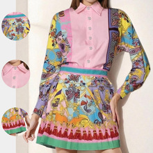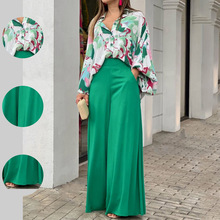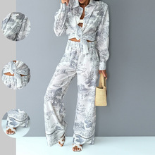 2025 봄 신상 크로스보더 독립 스테이션 유럽 및 미국 여성 의류 스타일 통근용 V넥 긴팔 프린트 여성용 슈트
