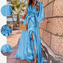 2025 봄 신상 크로스보더 독립 스테이션 유럽 및 미국 여성 의류 스타일 통근용 V넥 긴팔 프린트 여성용 슈트스토어 가기