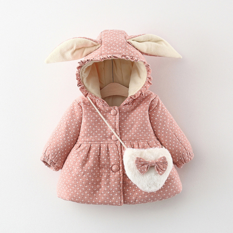 2025 겨울 새 스타일 꽃 아이디어 코튼 코트 아기 소녀 플러스 벨벳 두꺼운 코튼 코트 무료 사랑 어깨 가방스토어 가기