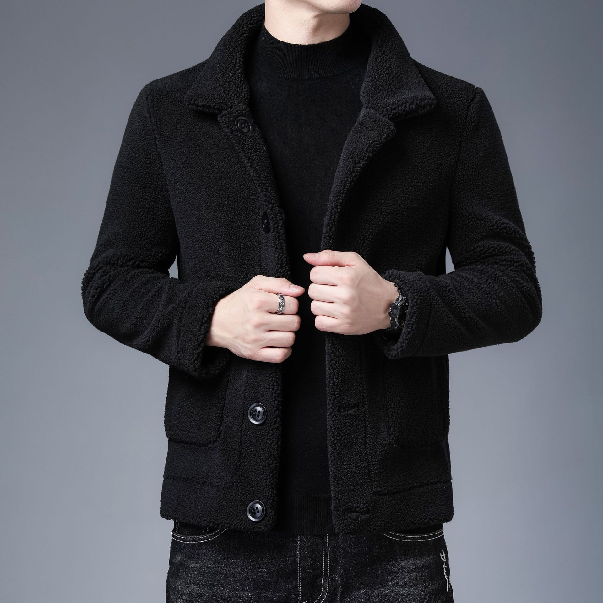 2025년 신상품 스웨이드 재킷 남성 중년 남성복 상의 플러스 벨벳 두꺼운 가죽 재킷 가죽과 모피 일체형스토어 가기