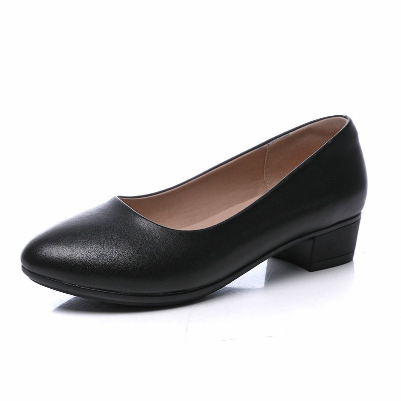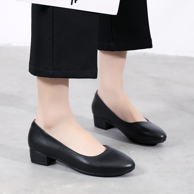 작업 신발 여성용 블랙 2023 가을 새로운 스튜어디스 전문 작업 신발 가죽 신발스토어 가기