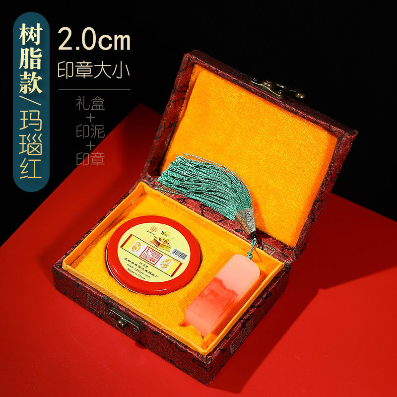 • [브로케이드 박스] 술 포함 마노 레드 [2.0cm] + 철 상자 잉크 패드