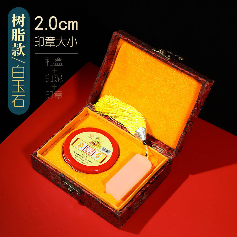 • [브로케이드 상자] 술 부착 백옥 [2.0cm] + 철 상자 잉크 패드