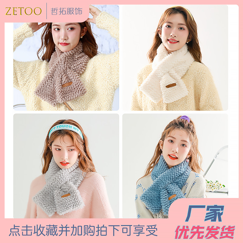 공주풍 플러시 스카프 여성용 달콤하고 신선한 가을 겨울 단색 따뜻한 인조 토끼털 목도리 재고 있음 작은 프랑스 스타일스토어 가기