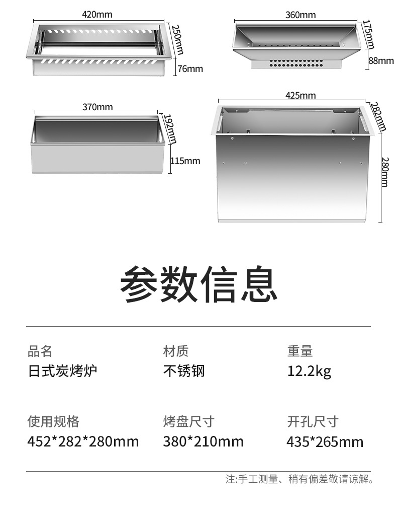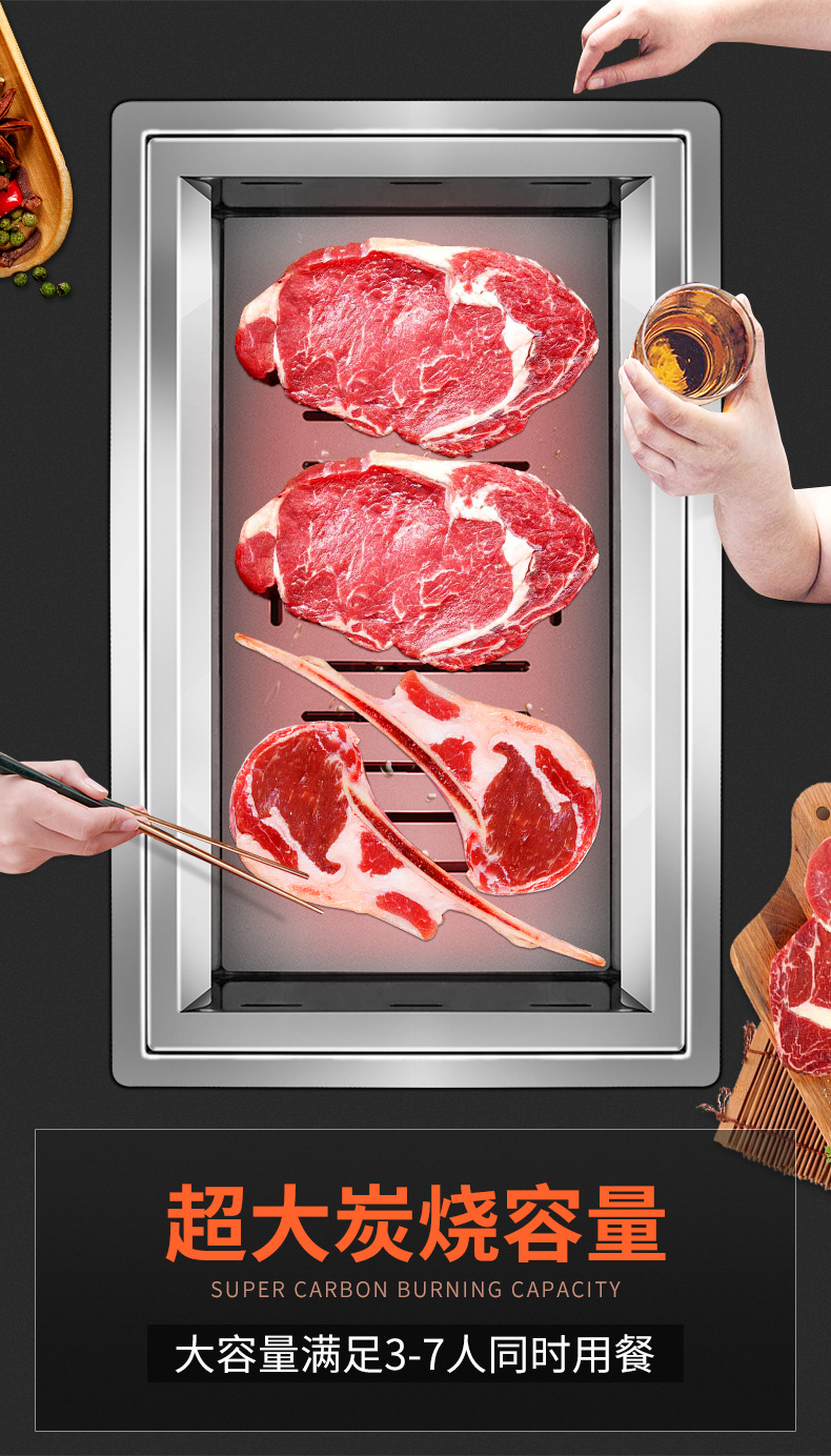 카본 그릴 시판 일본식 바비큐 그릴 숯불 그릴 사각 내장형 숯 바비큐 그릴 제조 업체스토어 가기