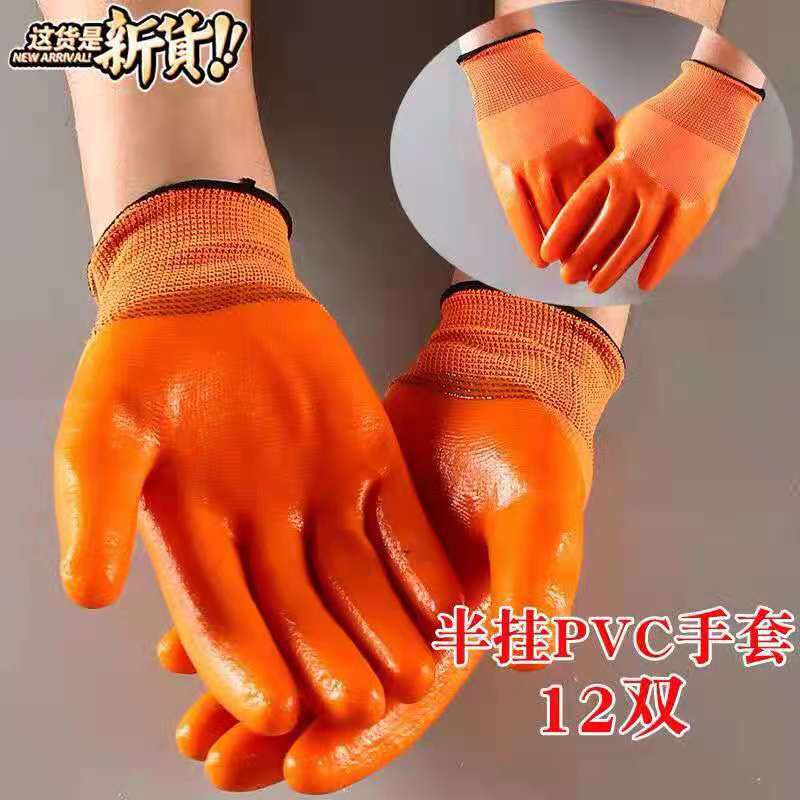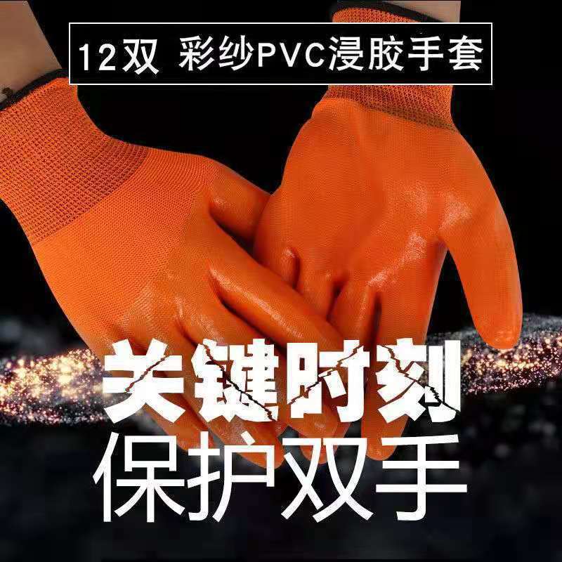 컬러 원사 담근 PVC 장갑 사용 방지 내유성 가정용 슬라이딩 건설 스틸 바 작업자 취급 노동 보호 장갑스토어 가기