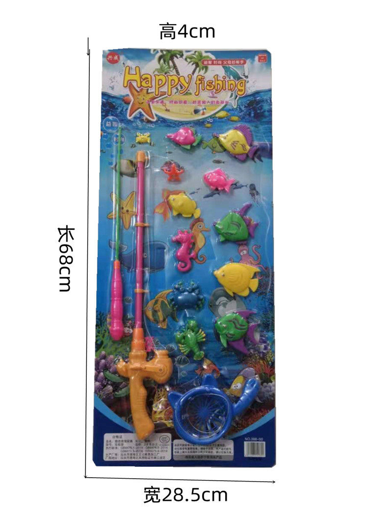一卡2根鱼竿,一个网捞,10个小鱼 尺寸:68*28*4cm