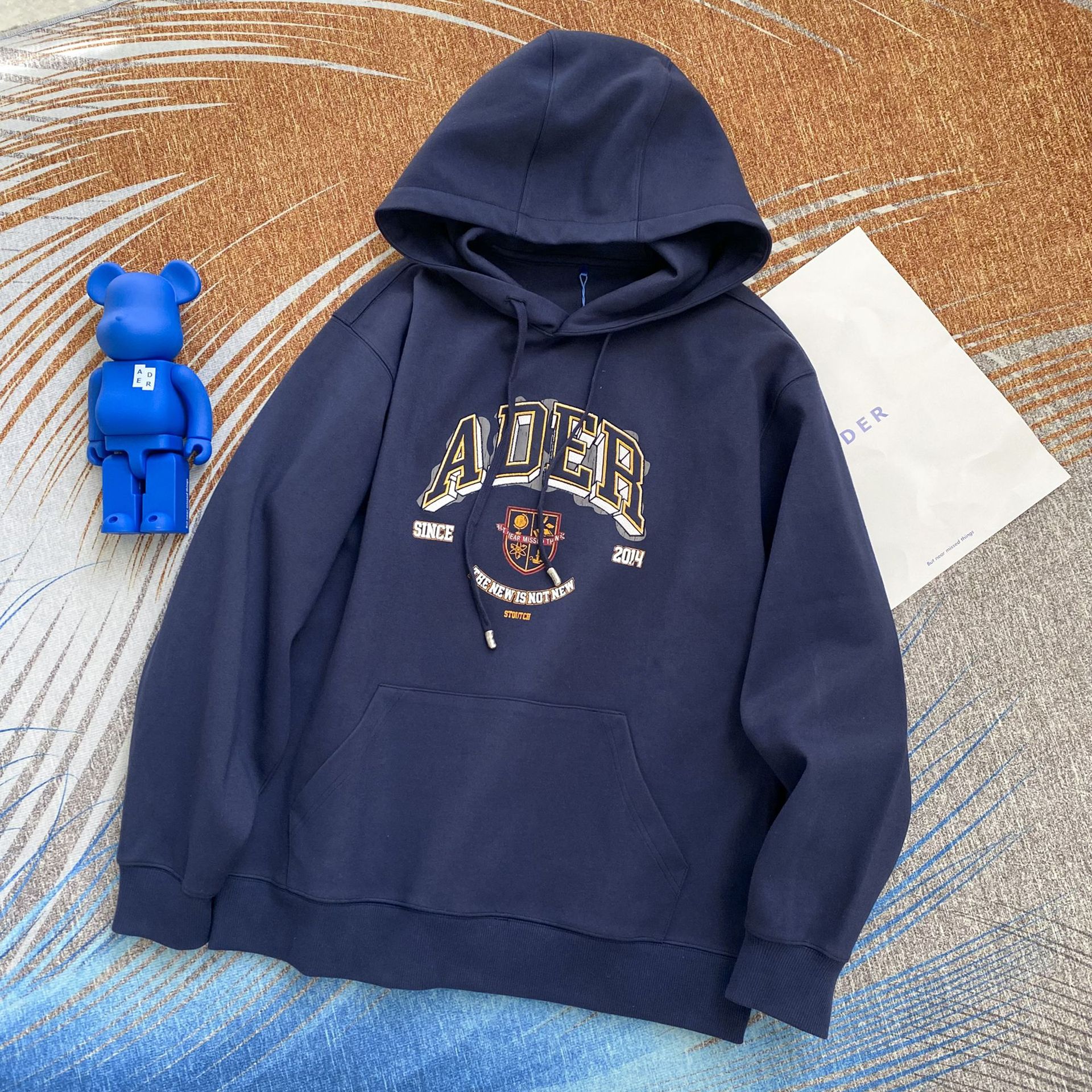 ADER 영국 아카데미 스타일 배지 자수 방패 편지 후드 스웨터 유행 커플 까마귀 유행 남성과 여성의 같은 스타일스토어 가기