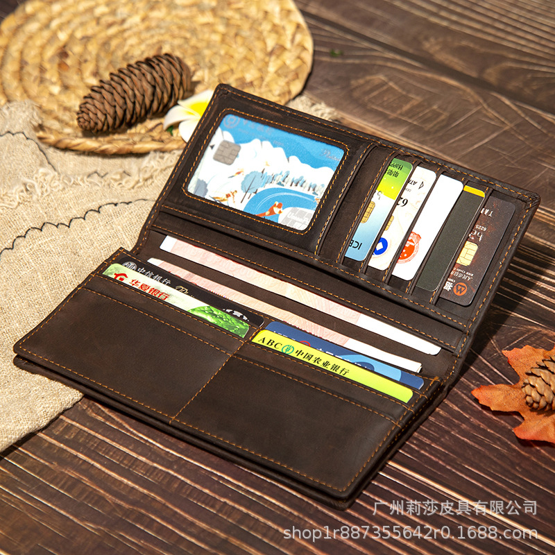 자기 방지 남성 지갑 크레이프 가죽 수출용 남성 비즈니스 천연 가죽 지갑 롱 스타일 명함 지갑 공장 도매스토어 가기