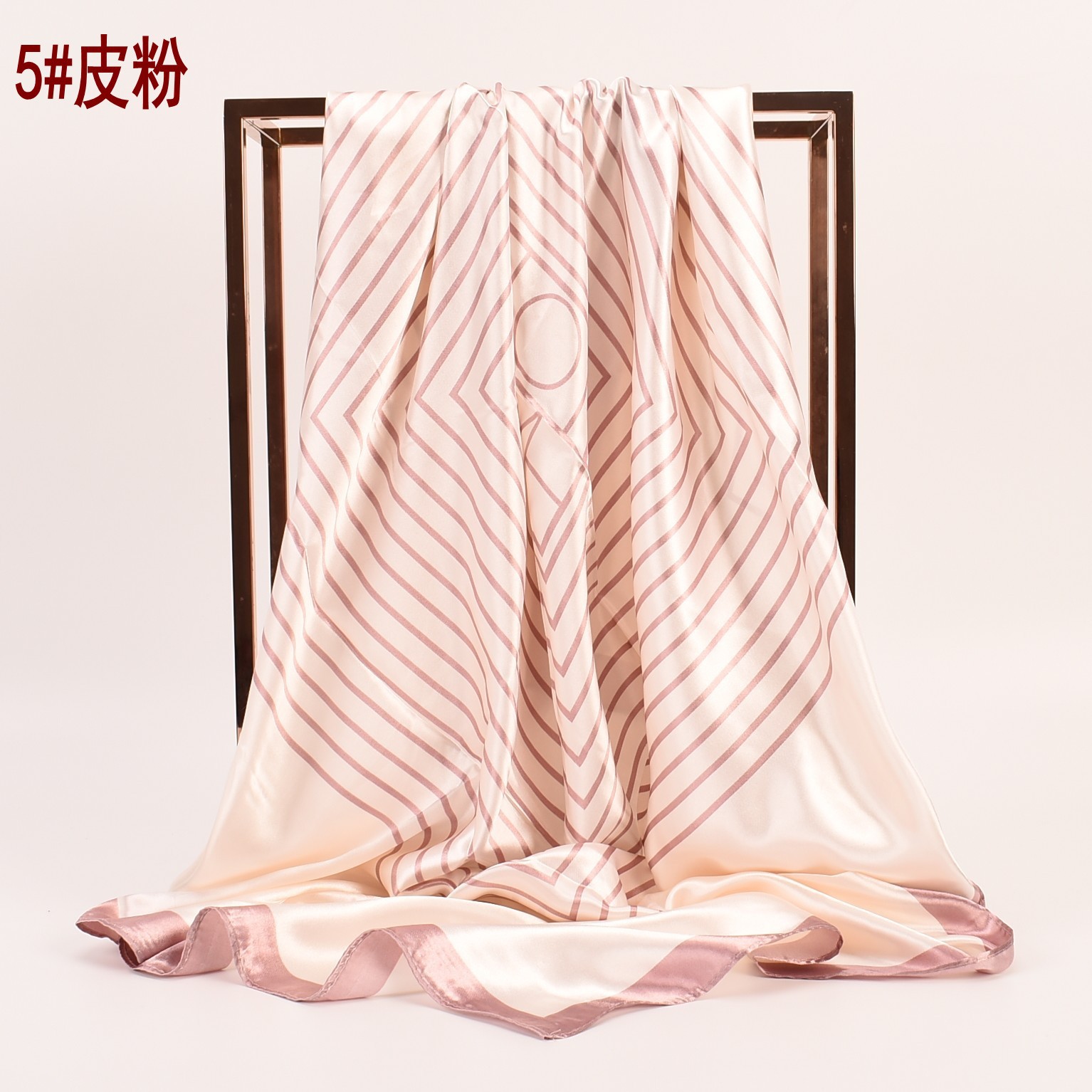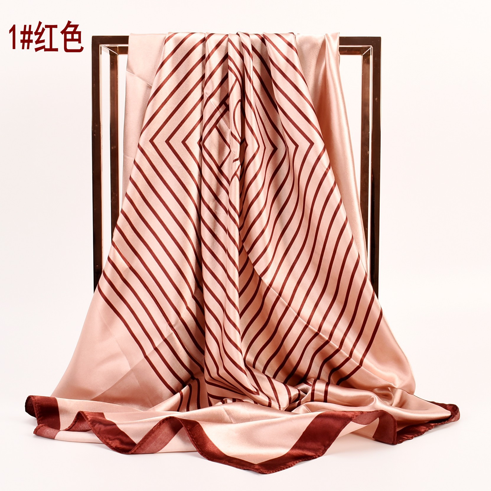 국경 간 공급 2023 봄과 가을 새로운 90*90 평방 스트라이프 인쇄 컬러 여성 스카프 도매