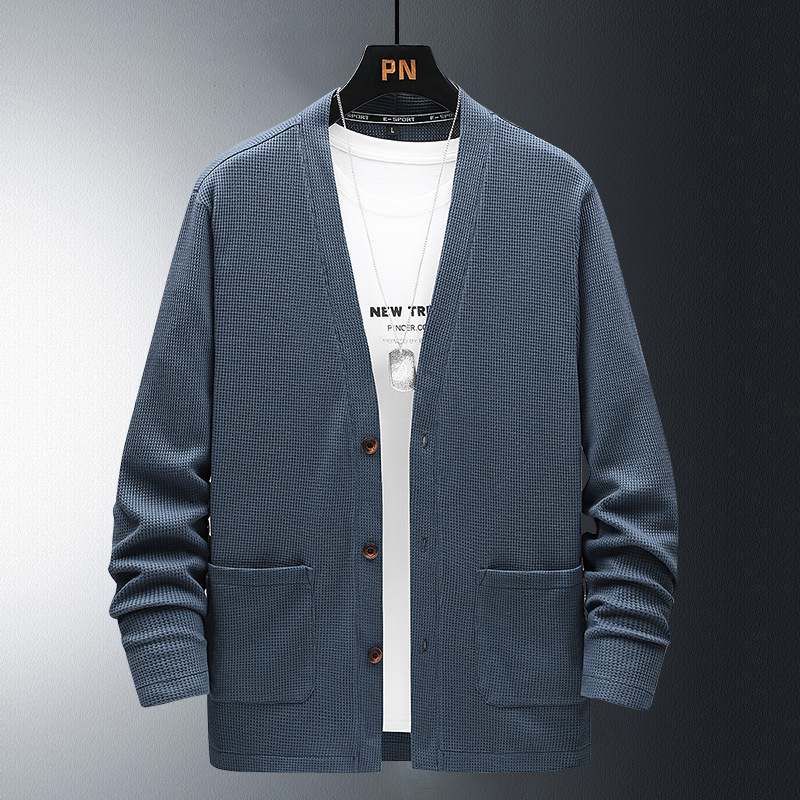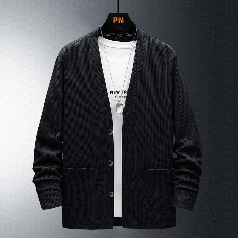 2021 남자 가을 새로운 한국 스타일 솔리드 컬러 브이넥 아우터 가디건 올매치 루즈한 롱 스웨터 인 트렌디스토어 가기