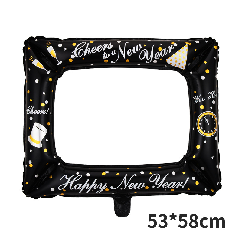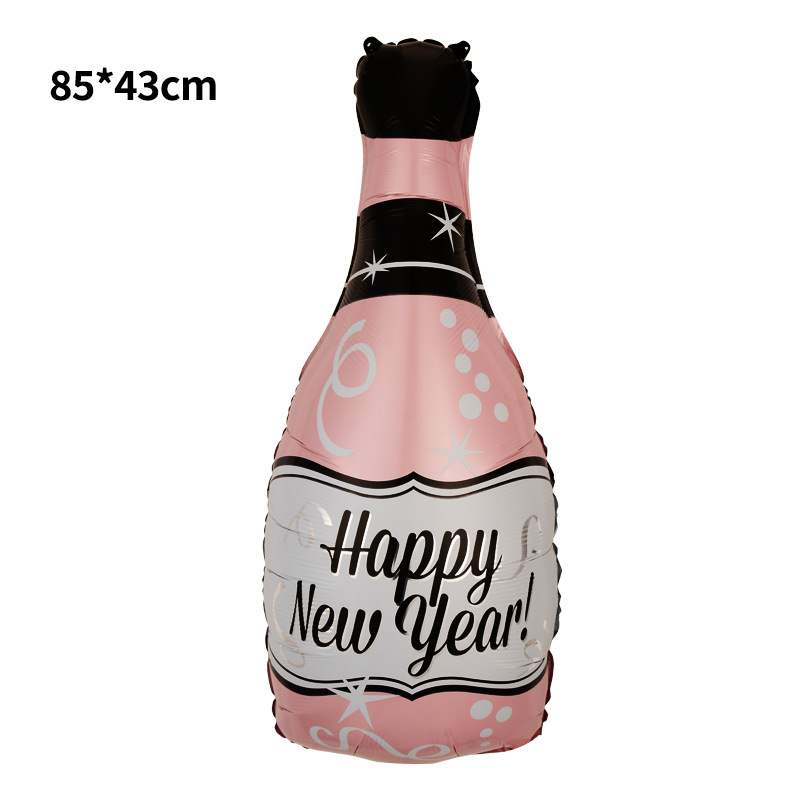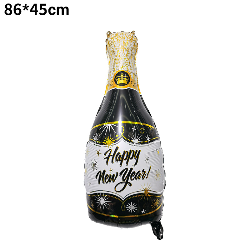 18 인치 해피 뉴 이어 알루미늄 필름 풍선 라운드 해피 뉴 이어 와인 병 사진 프레임 파티 장식 풍선