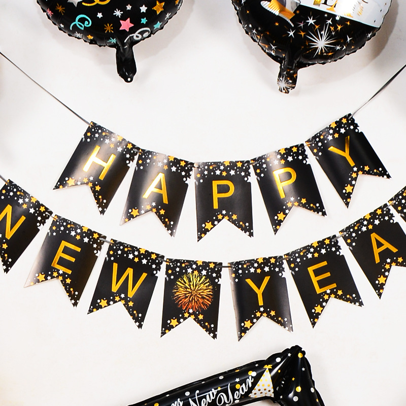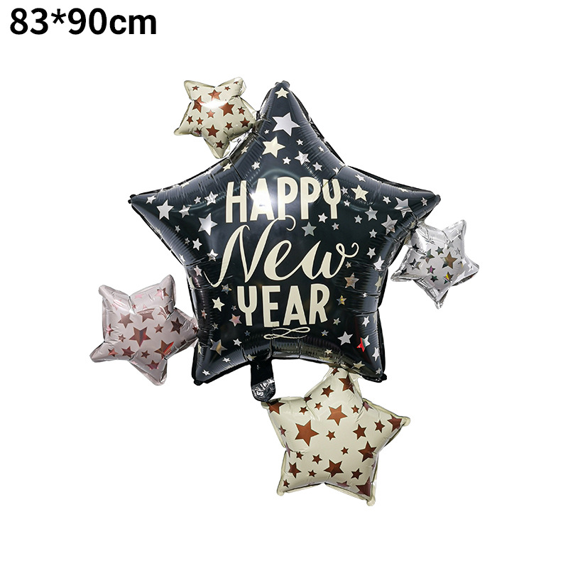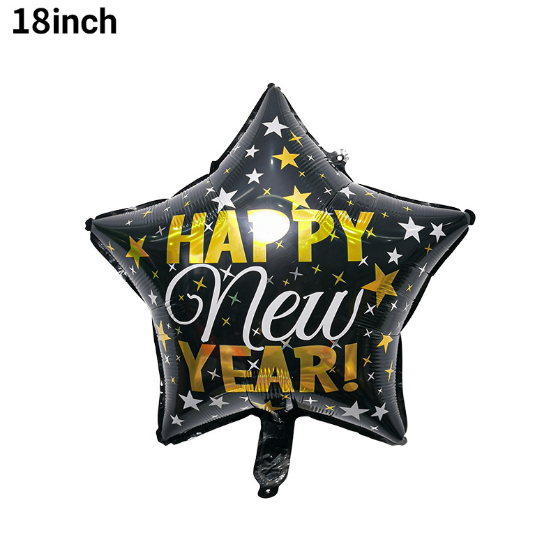 • 18 인치 새해 블랙 골드 영어 별 다섯개 별 빛나다