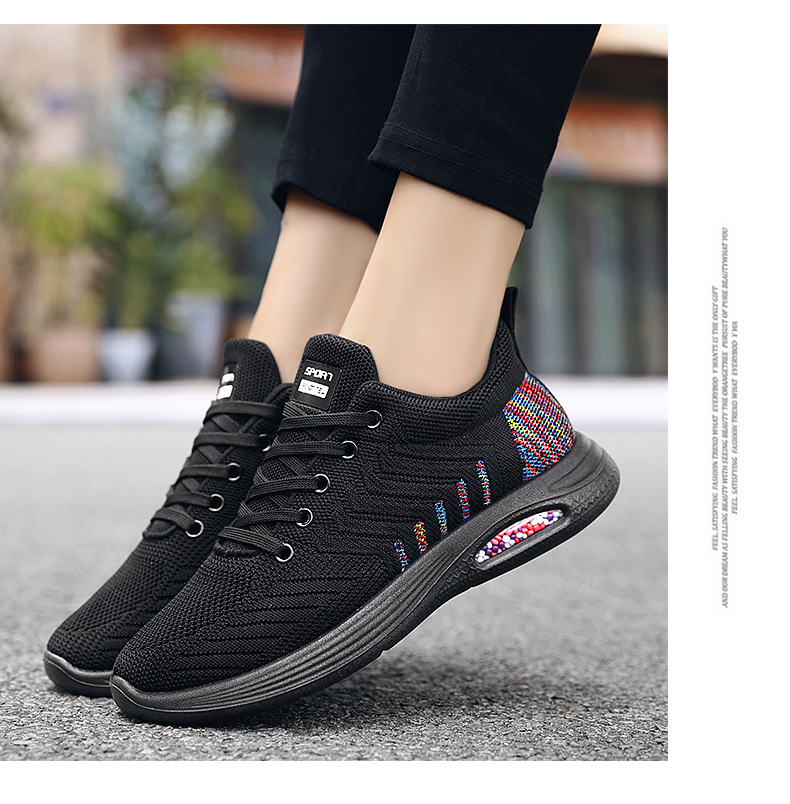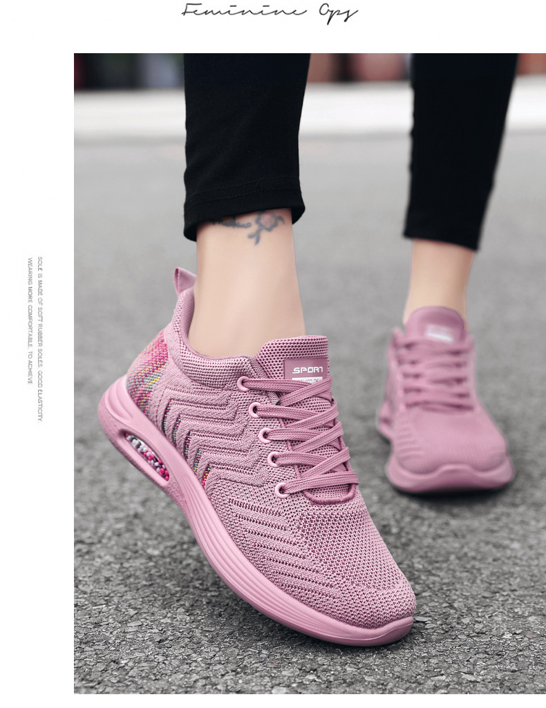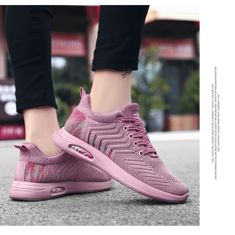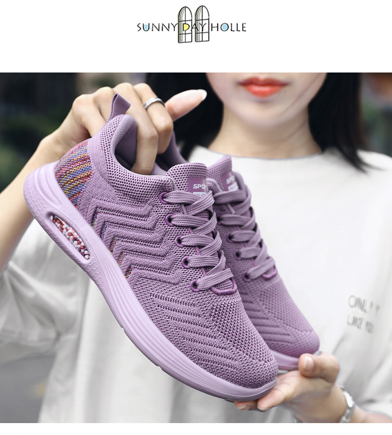 여성용 신발 봄 신상 여성용 폴리우레탄 신발 면 소재 플라이 니트 스포츠 캐주얼 신발 제조업체 재고 도매스토어 가기