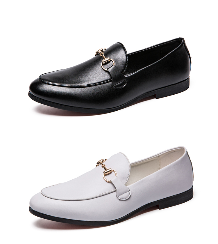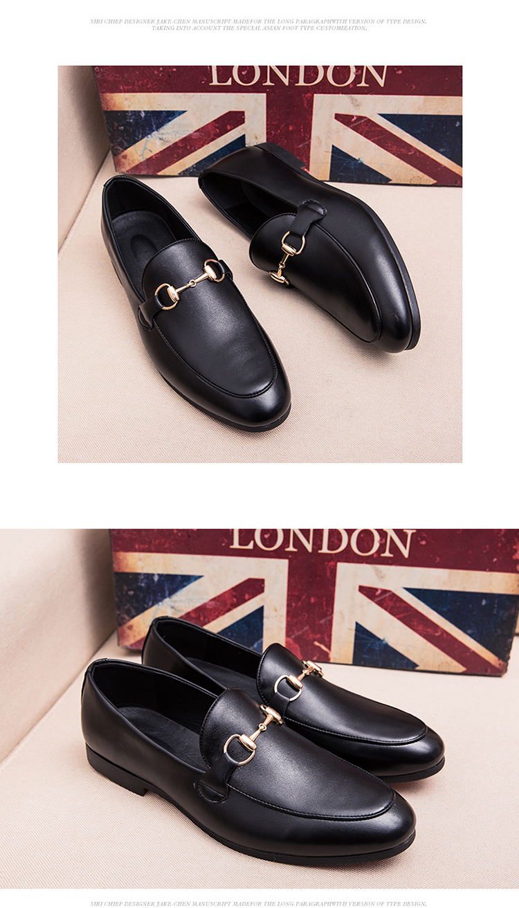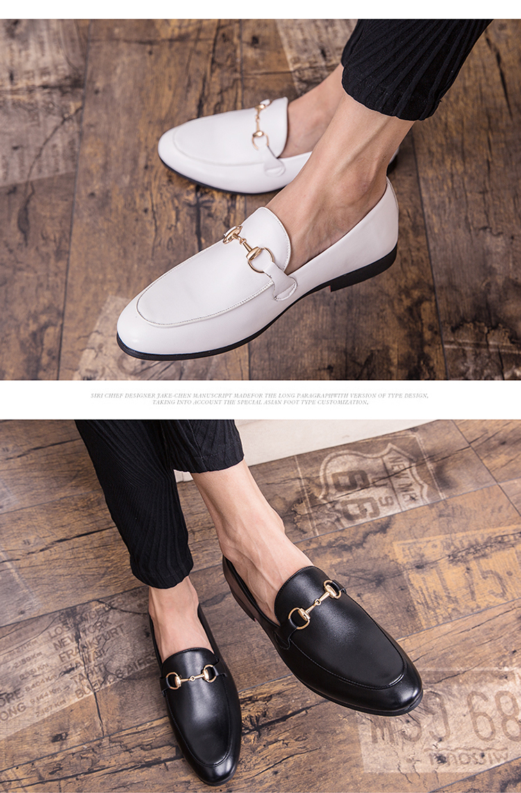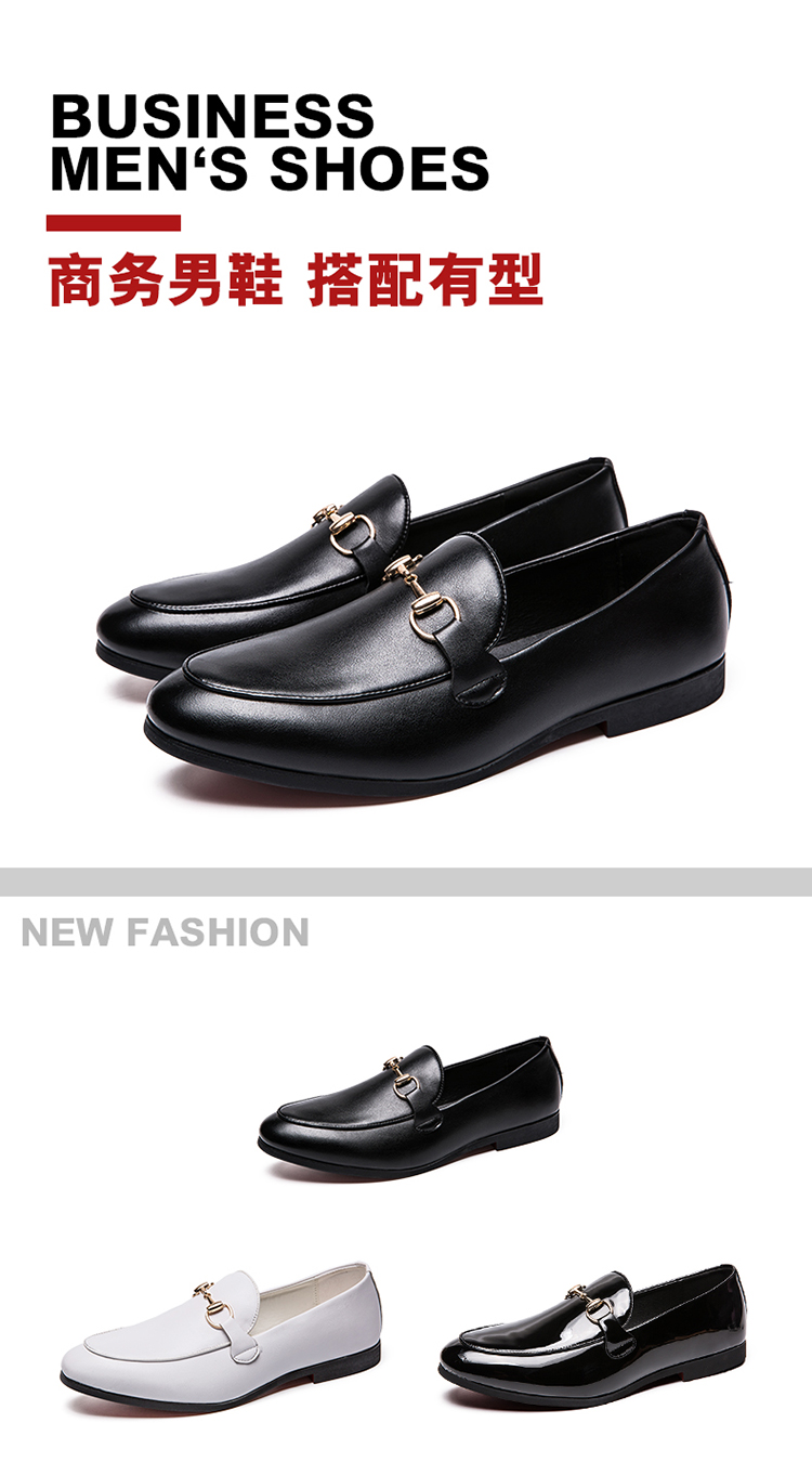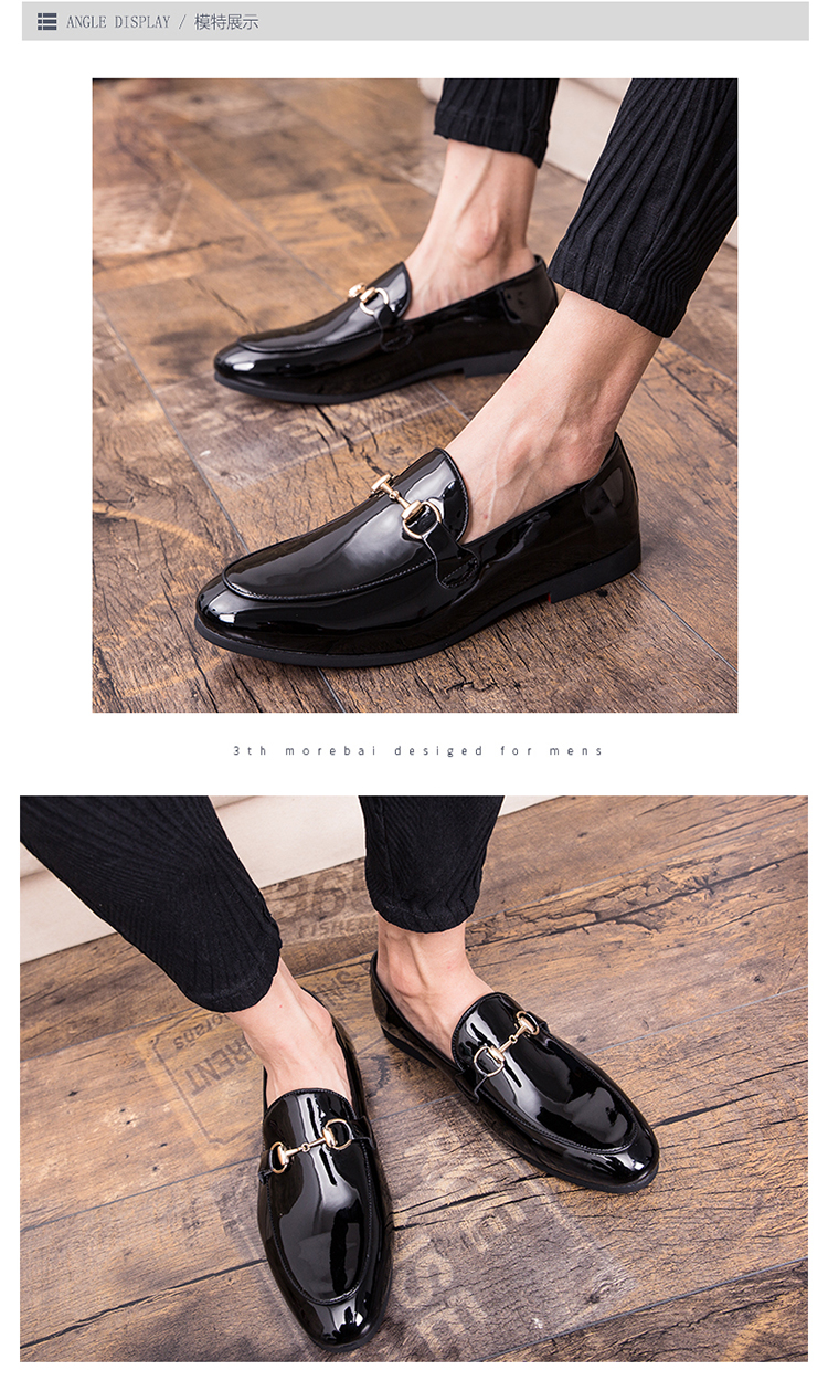 秋冬新款尖头铆钉小皮鞋青少年英伦潮商务发型师个性亮面豆豆男鞋