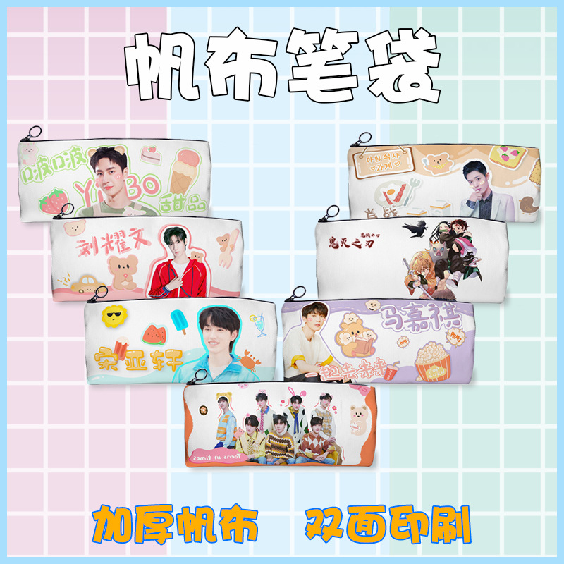 스타 애니메이션 필통 시대 송야쉬안 마자치 귀멸의 칼날 해적 투하 사각형 심플 캔버스 문구 가방스토어 가기