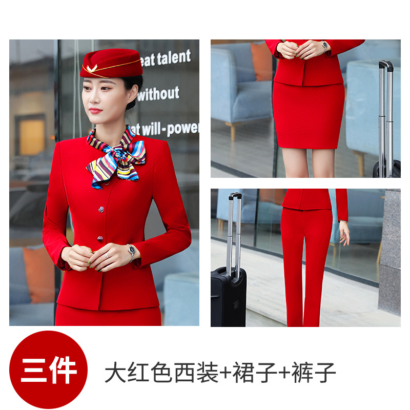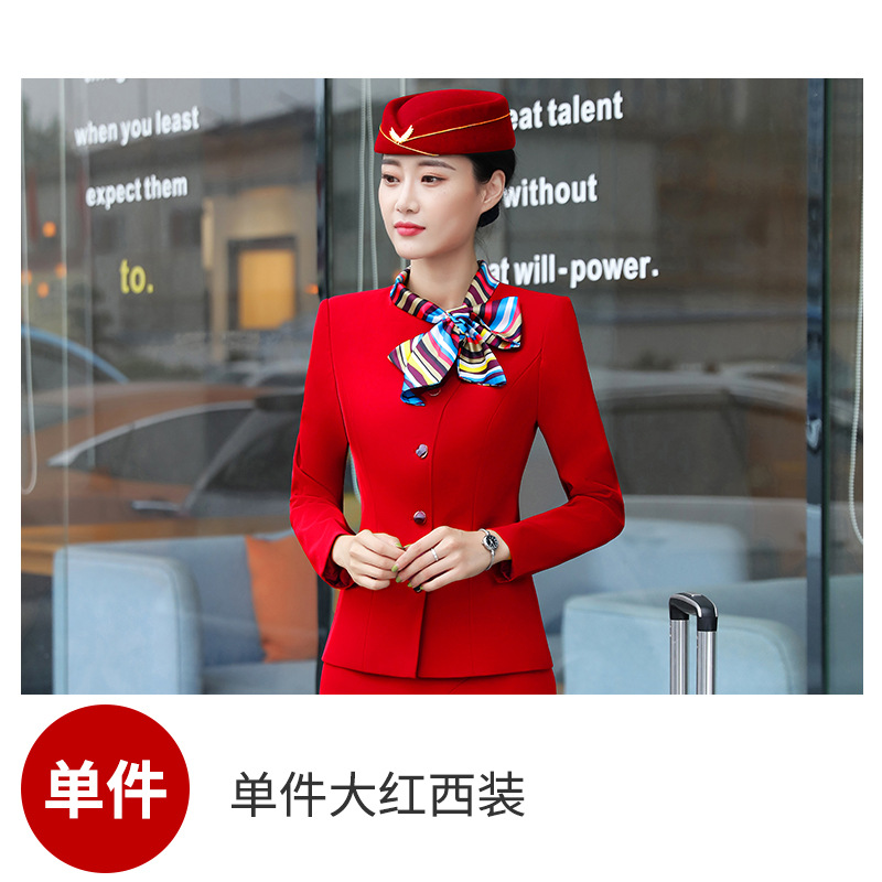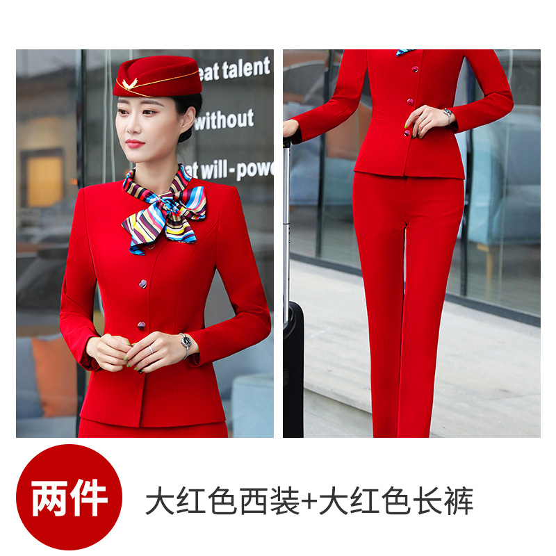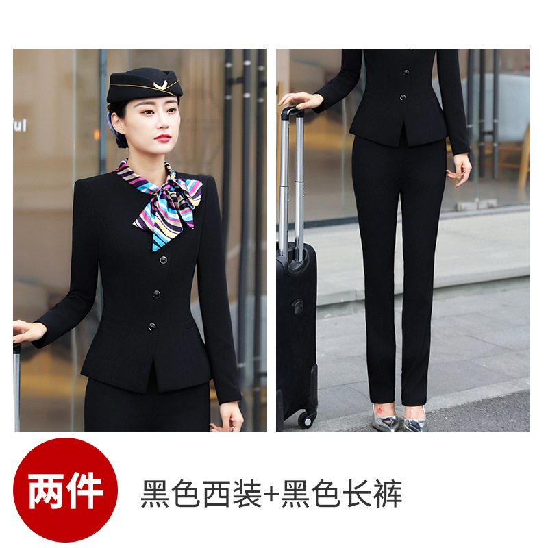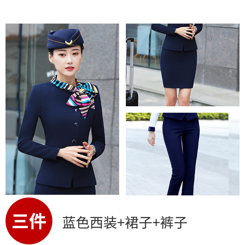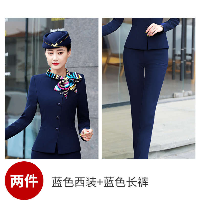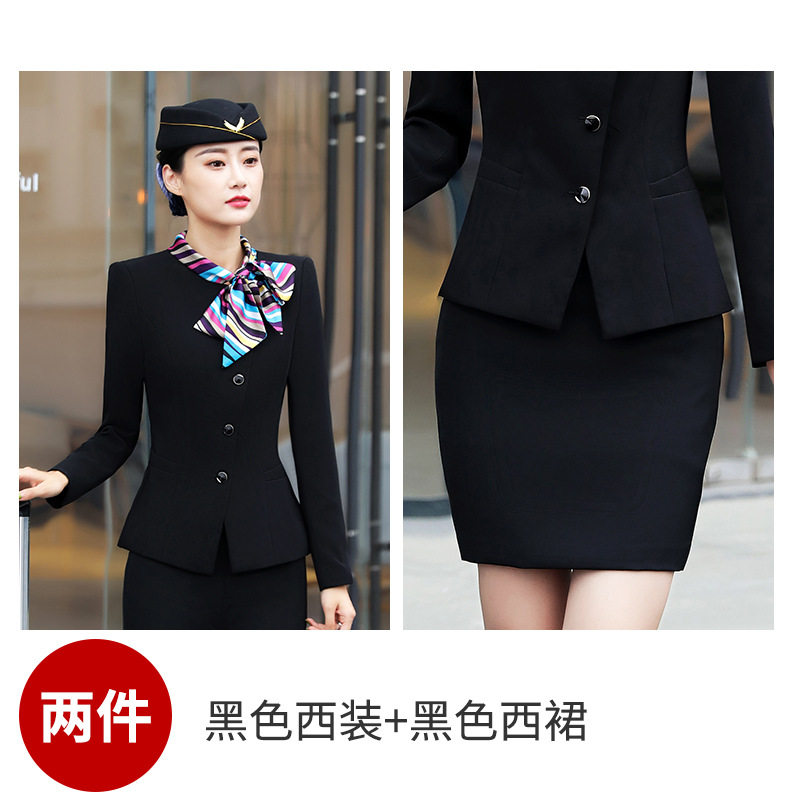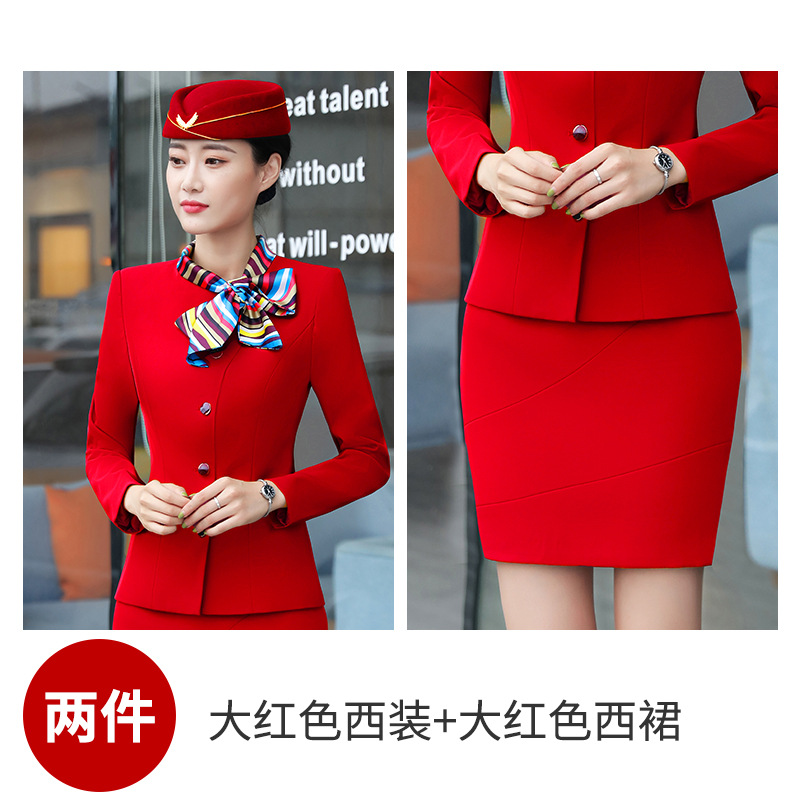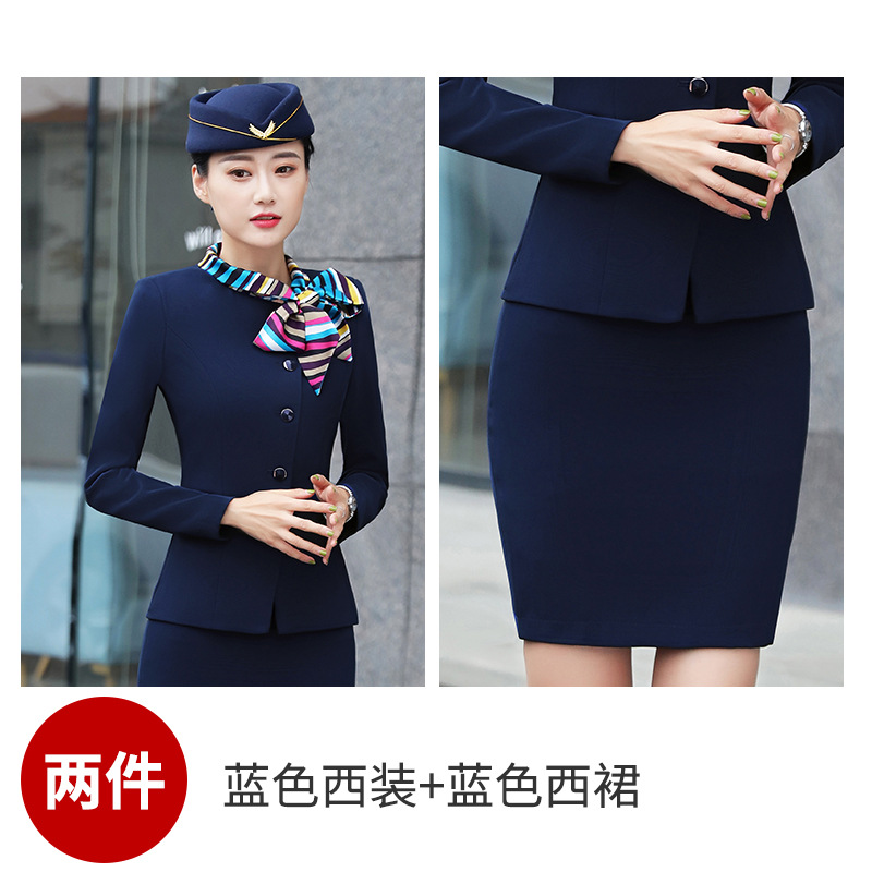 스튜어디스 프로페셔널 세트 여성의 가을과 겨울 2021 미용사 호텔 프론트 데스크 작업복 고급 활 긴팔 원피스스토어 가기