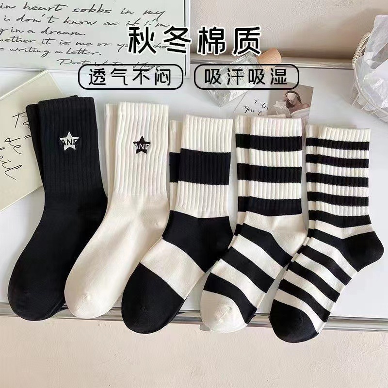 흑백 하이 삭스 올매치 남성용 중간 길이 양말 가을 겨울 스포츠 단색 트렌디 브랜드 하이탑 커플 캐주얼 롱 양말스토어 가기