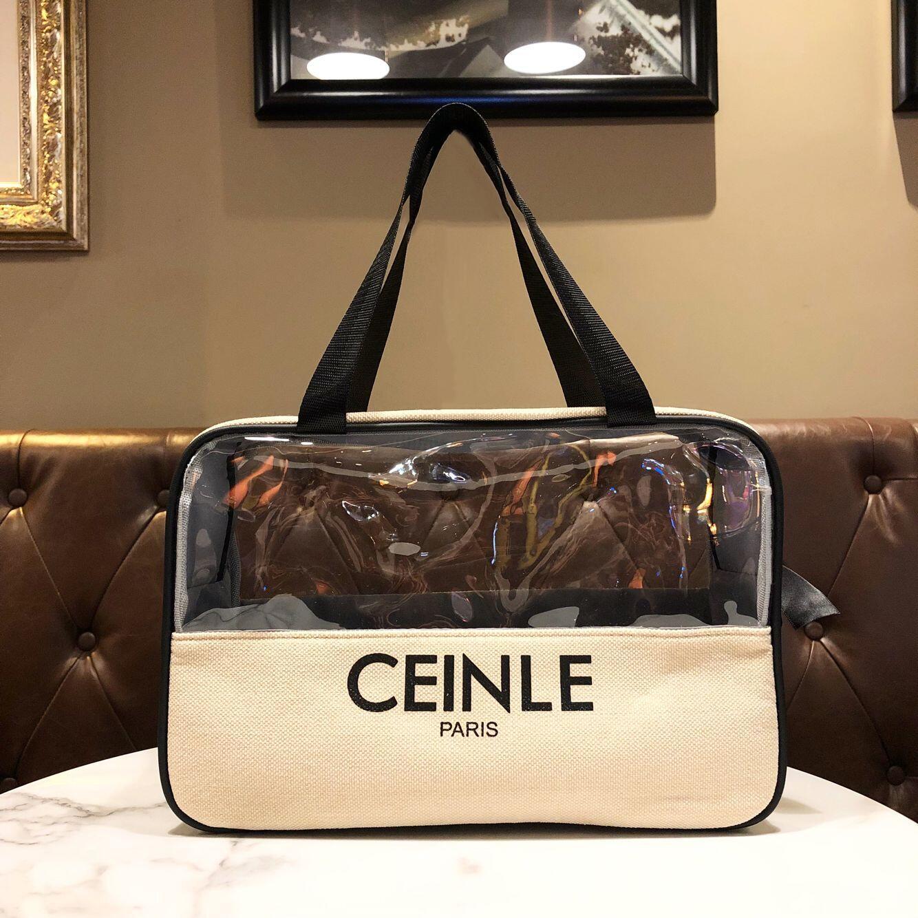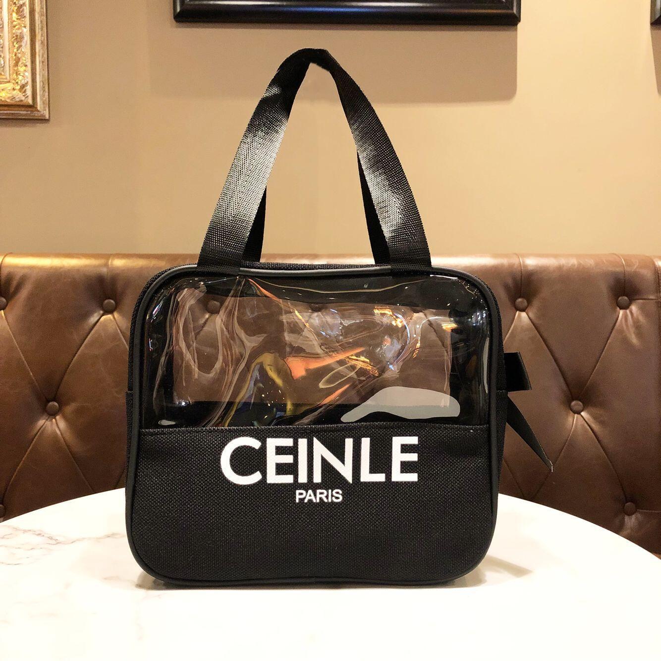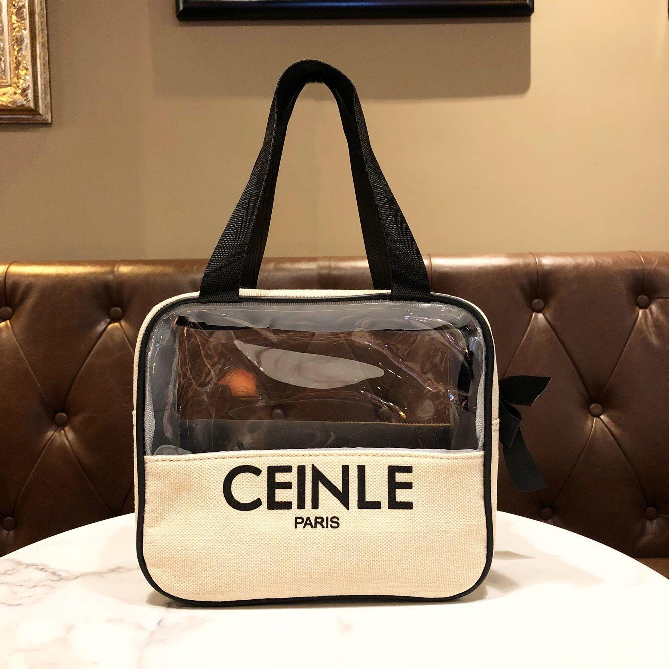 반투명 간단한 화장품 가방 휴대용 캔버스 편지 지퍼 핸드백 유행 사각 대용량 보관 가방