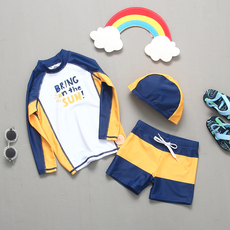 한국 스포츠 소년 분할 긴팔 자외선 차단제 수영복 큰 아이 속건 비치 수영복 서핑 세트 UPF50 +스토어 가기