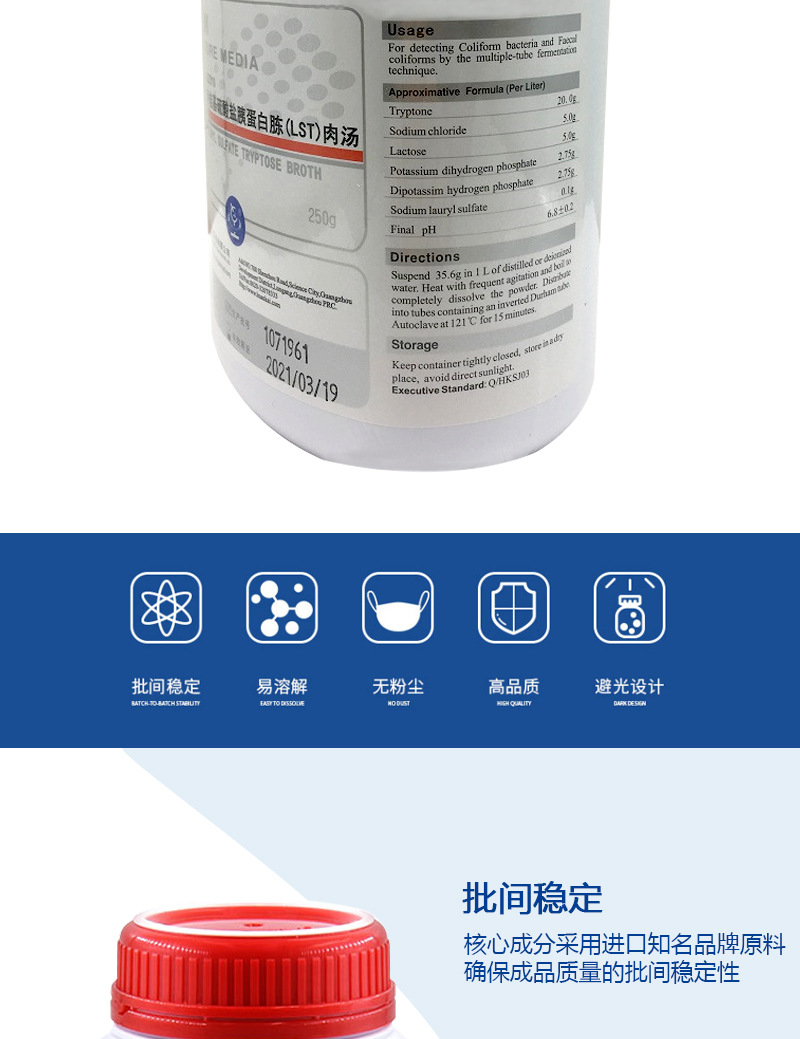 로릴 설페이트 트립톤 육수 LST022210 중간 대장균 검출 광동 Huankai