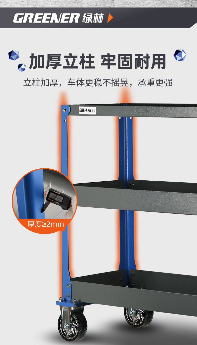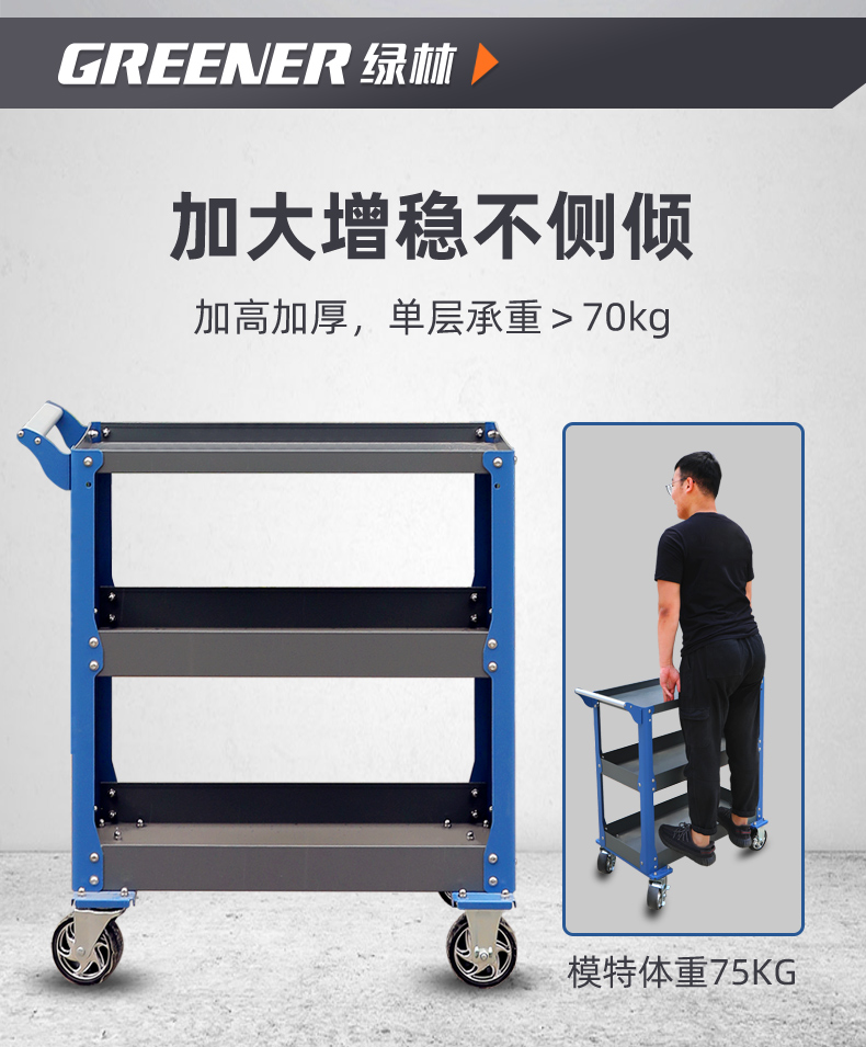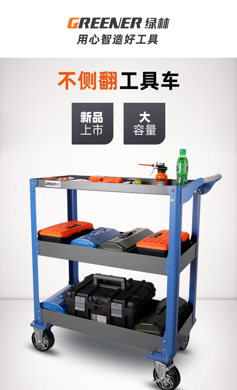 녹색 숲 도구 자동차 스테인레스 스틸 트롤리 3 층 도구 상자 다기능 프레임 자동차 자동차 수리 부품 자동차스토어 가기