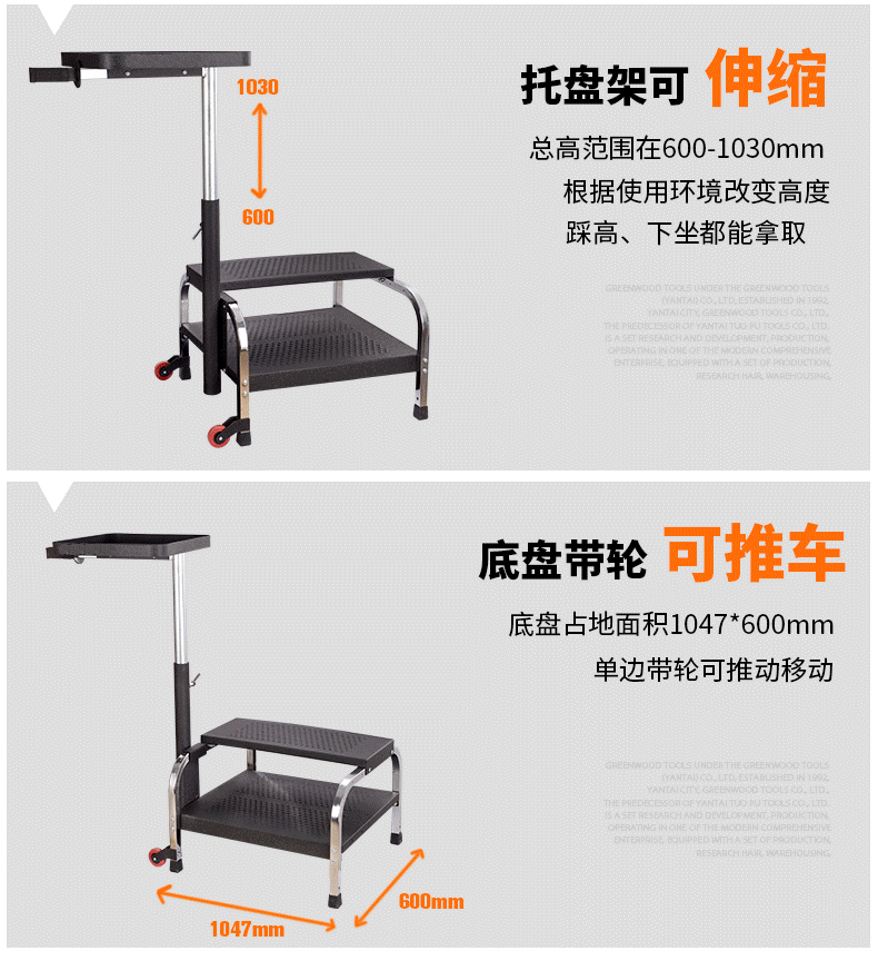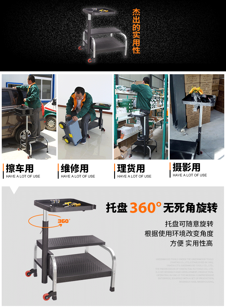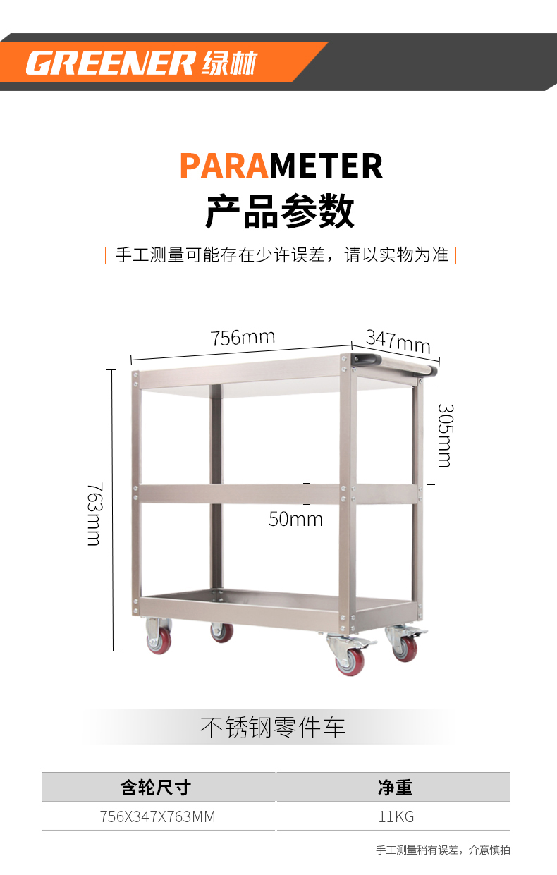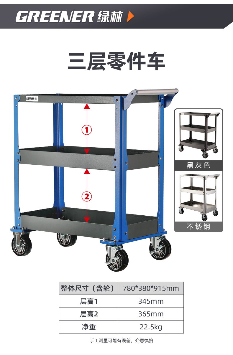 녹색 숲 도구 자동차 스테인레스 스틸 트롤리 3 층 도구 상자 다기능 프레임 자동차 자동차 수리 부품 자동차스토어 가기
