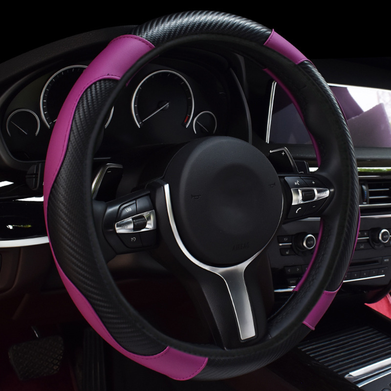 자동차 스티어링 휠 커버 탄성 내부 링 탄소 섬유 곡물 가죽 사계절 보편적 인 국경 전자 상거래 자동차 핸들 커버 도매스토어 가기