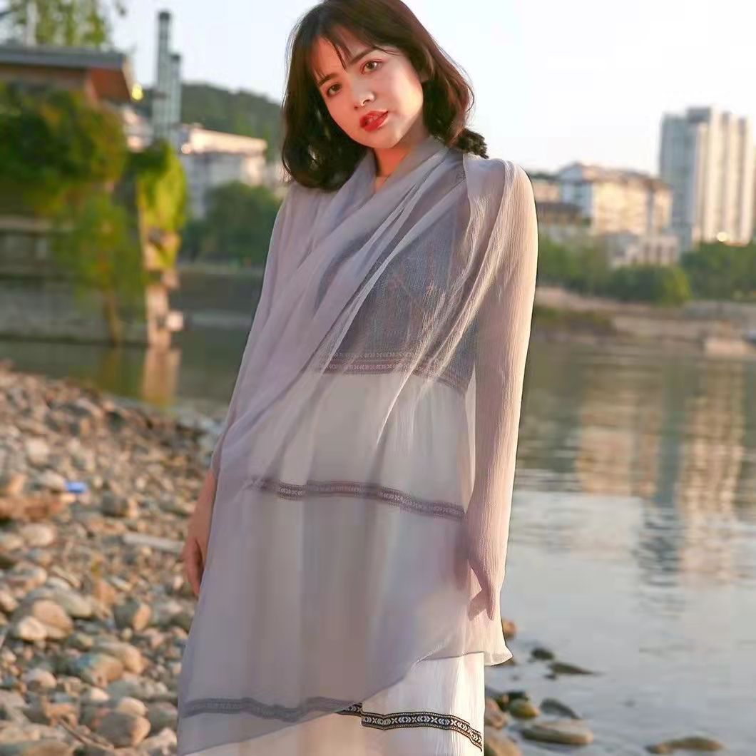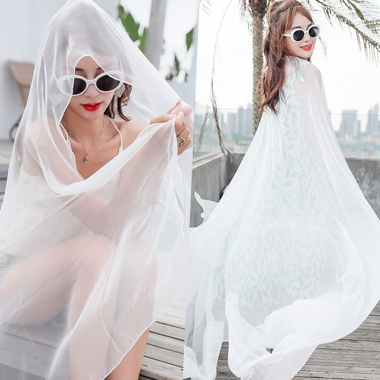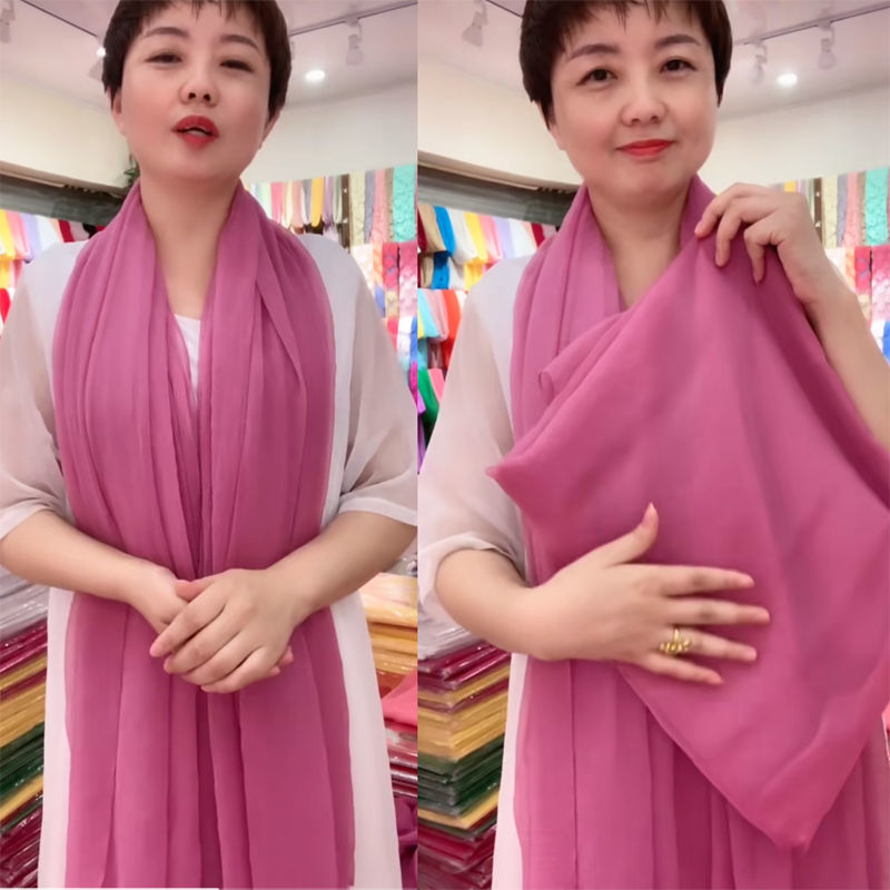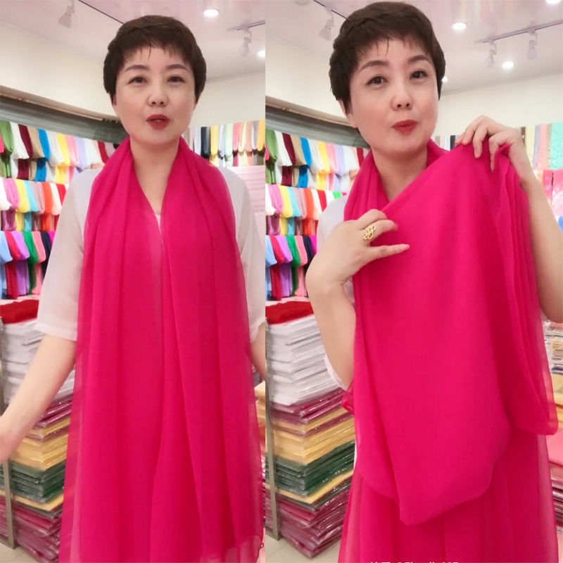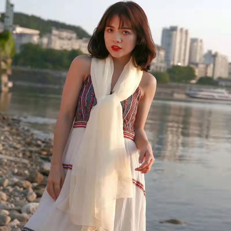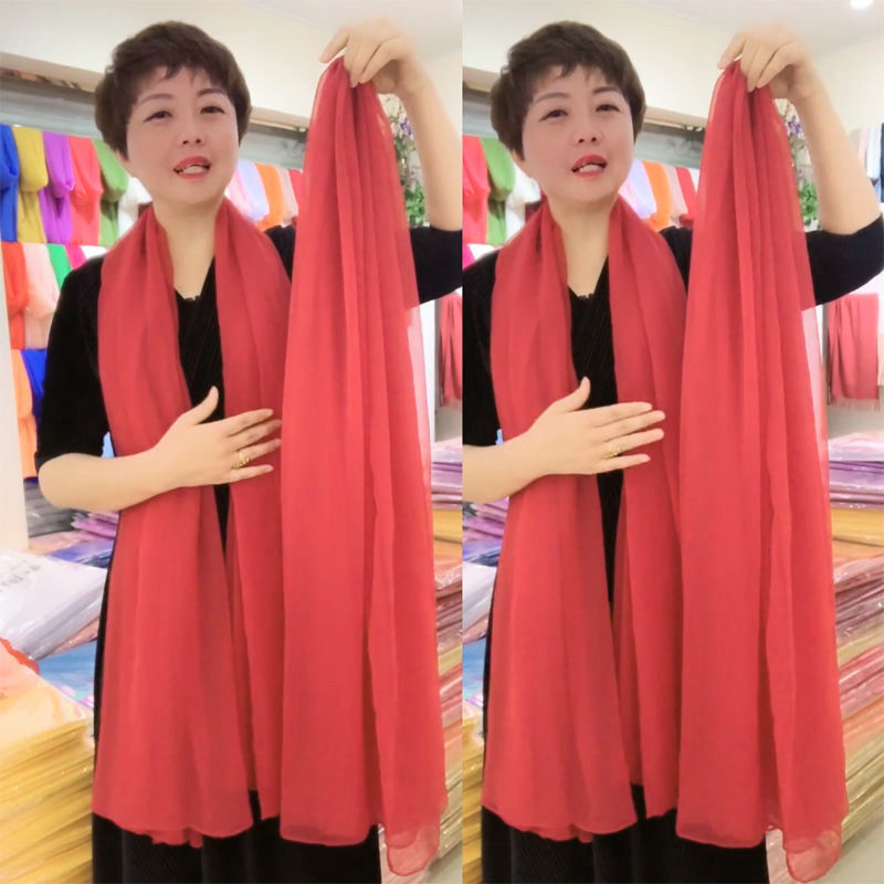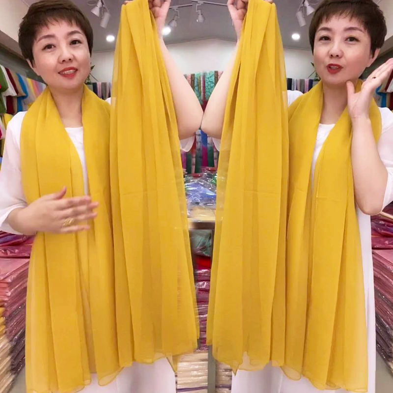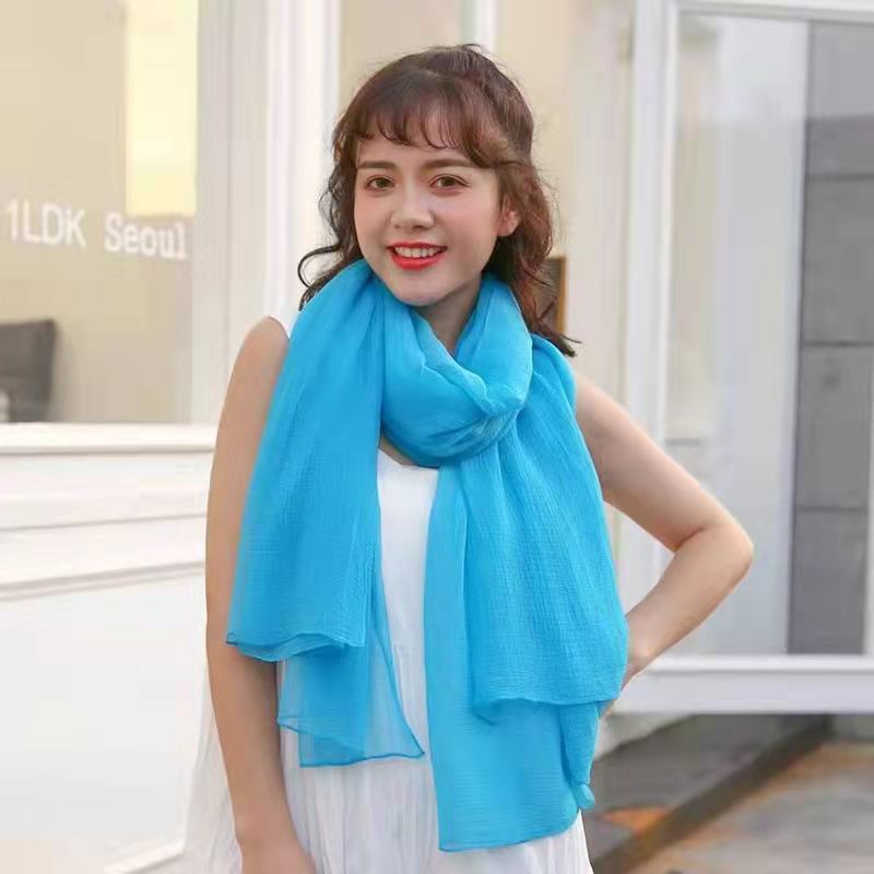 단색 악어 주름 스카프 여성용 자외선 차단제 숄 긴 실크 스카프 여름 새로운 비치 타올 스카프스토어 가기