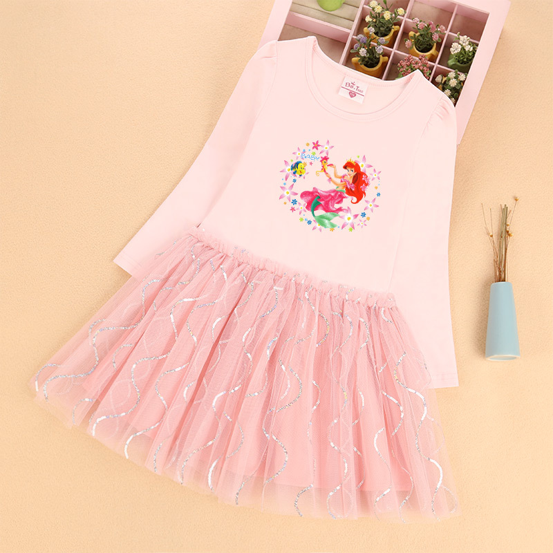 여자 승무원 목 긴 소매 원피스 인어 공주 원피스 어린이 스팽글 메쉬 스커트 핑크 치마 머리카락의 세대스토어 가기