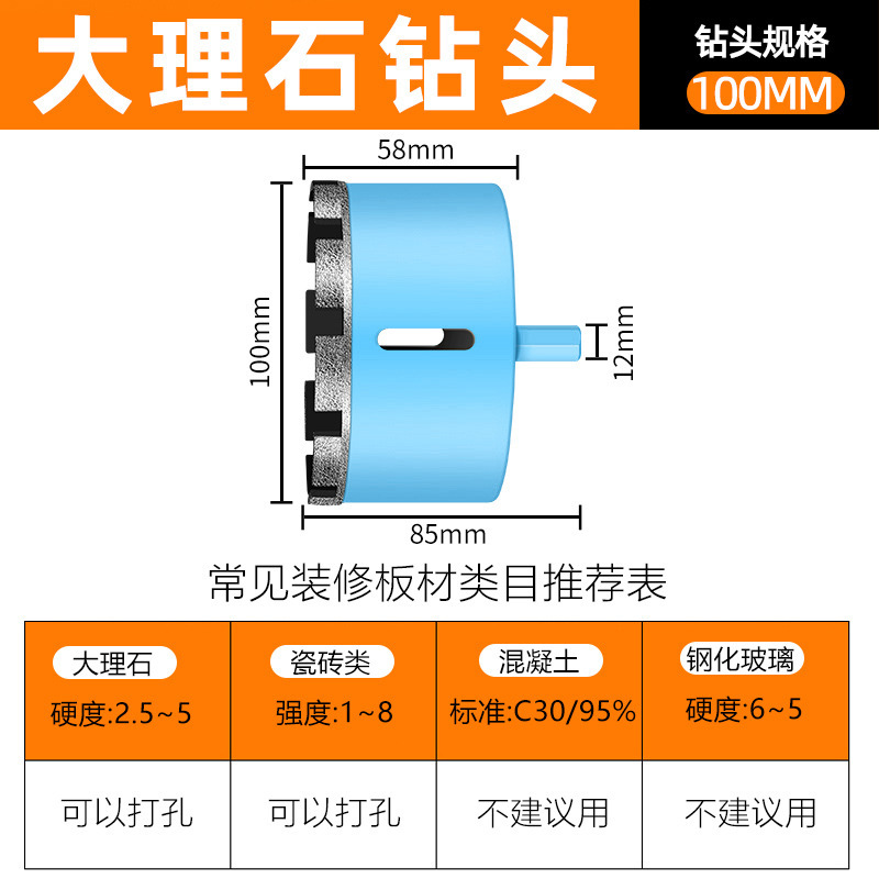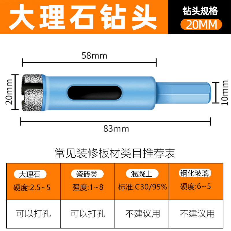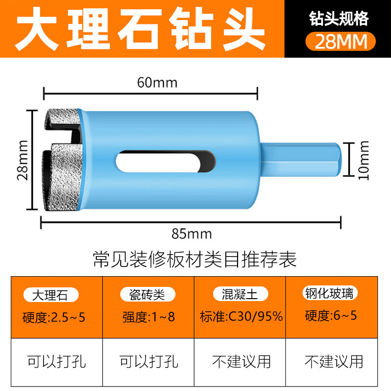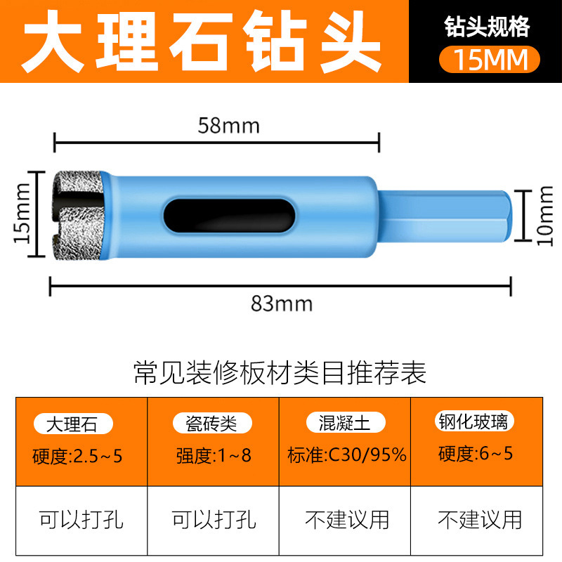 烧结大理石开孔器花岗岩石材瓷砖玻璃地砖钻头金刚石打扩孔金刚砂