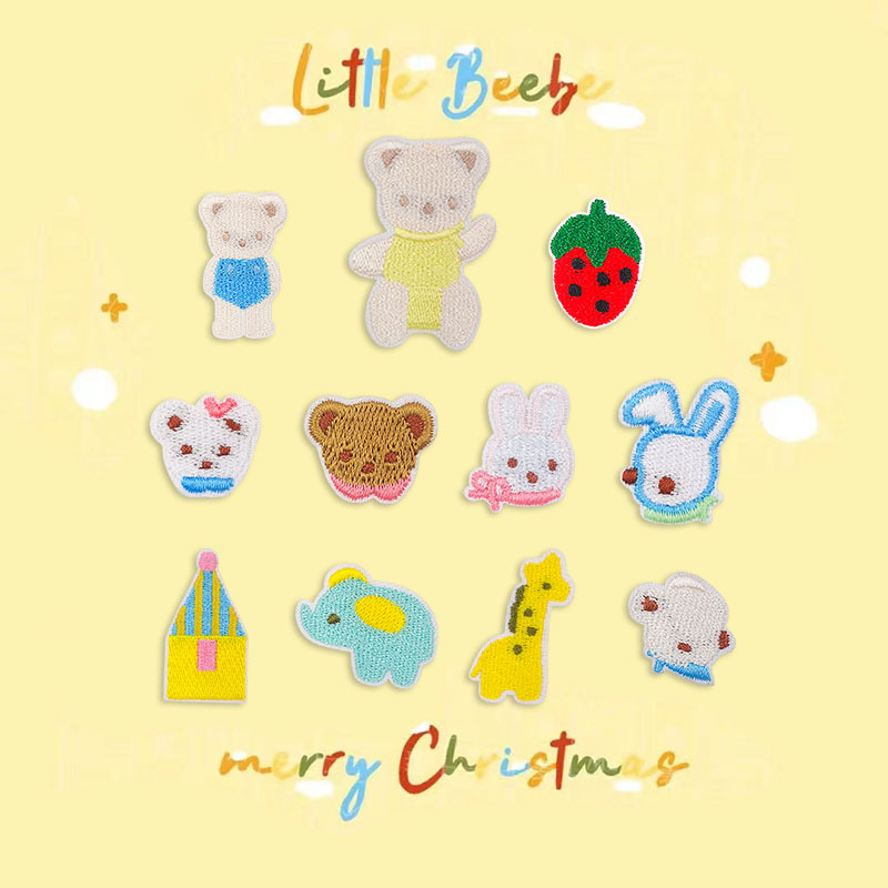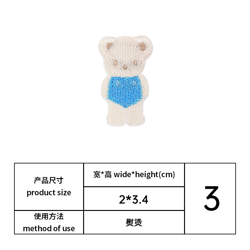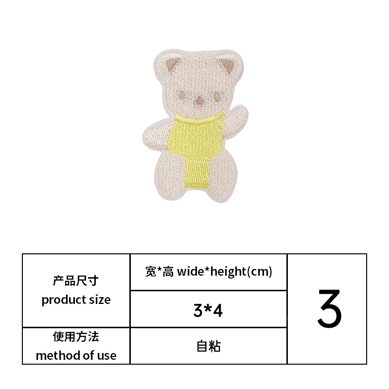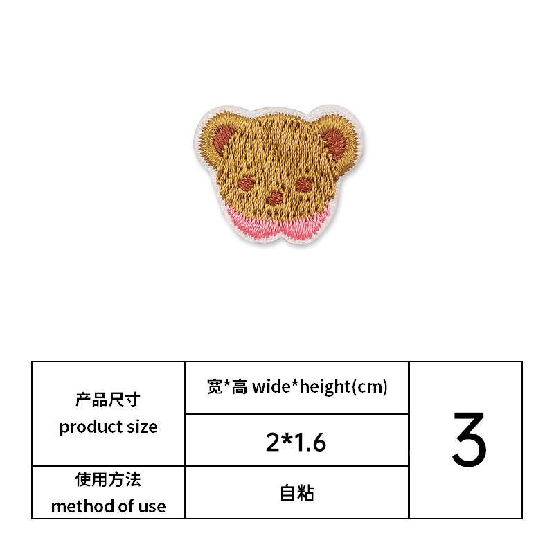 귀여운 곰 만화 자수 스티커 미니 인형 옷 장식 천 스티커 재고 작은 동물 패치 스티커 자체 접착