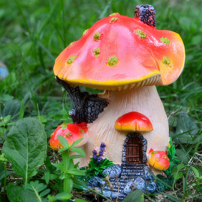 국경 간 수지 공예의 출처 버섯 집 작은 장식품 이끼 마이크로 조경 장식 분재 버섯 조각