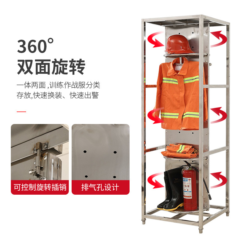 스테인레스 스틸 소방관 전투 의류 화재 걸이 구조 의류 걸이 회전 양면 화학 보호 의류 코트 랙
