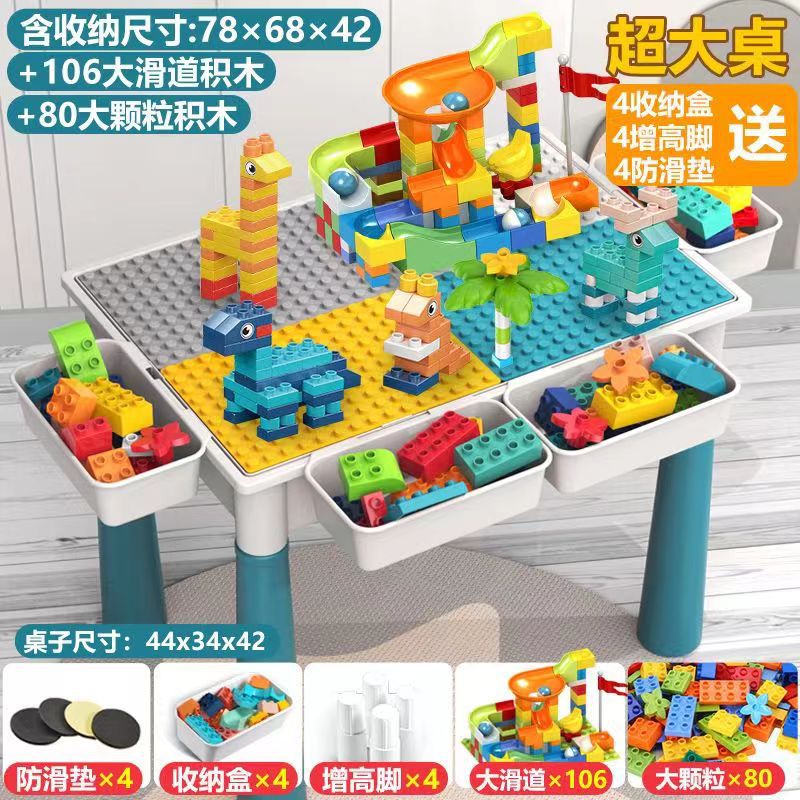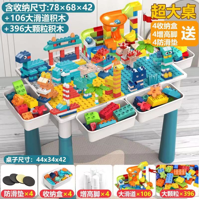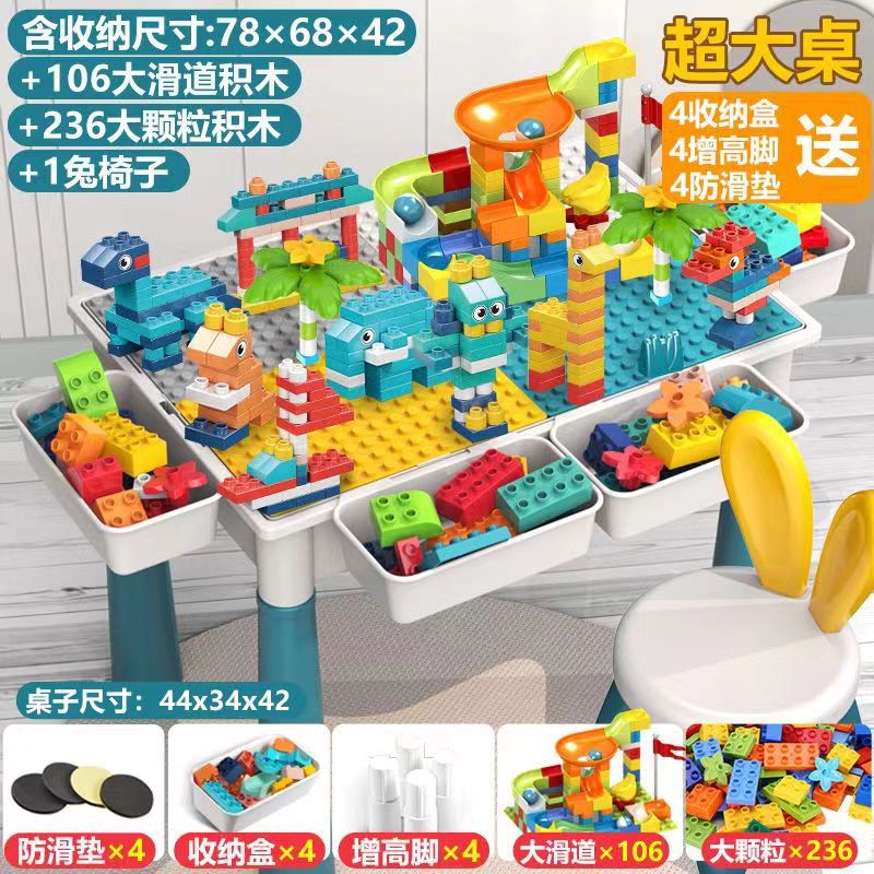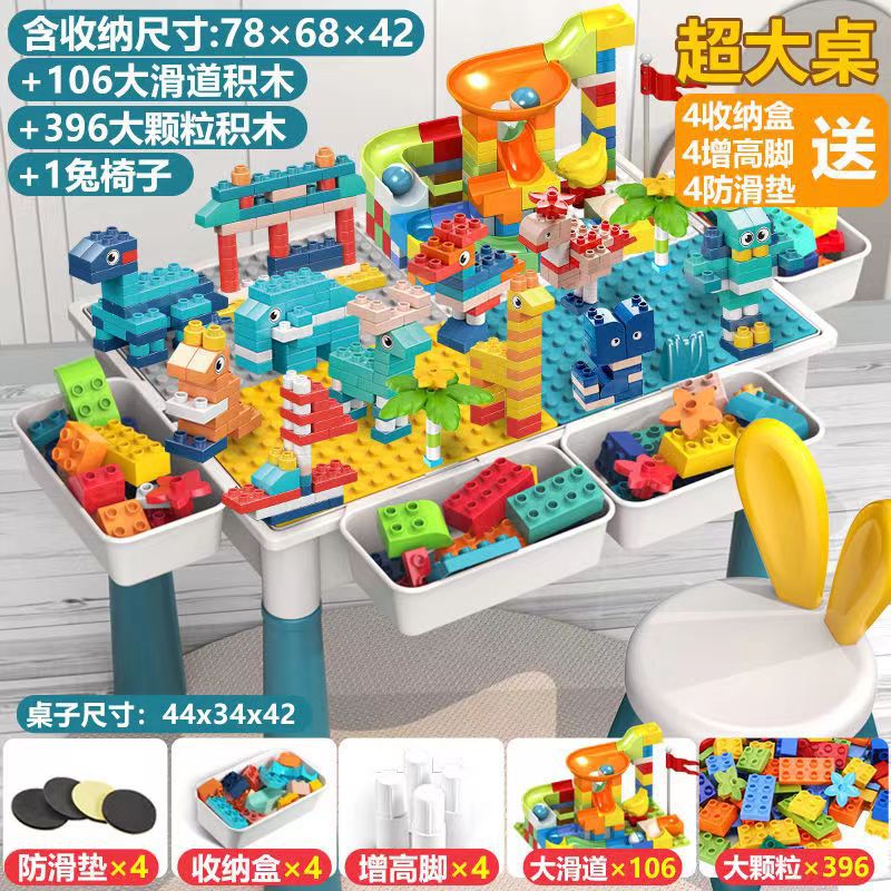 • 초대형 확장 빌딩 블록 테이블 + DIY 동물 300개 + 슬라이드 143개 + 토끼 의자 1개 + 높이 증가 수납 공간 4개