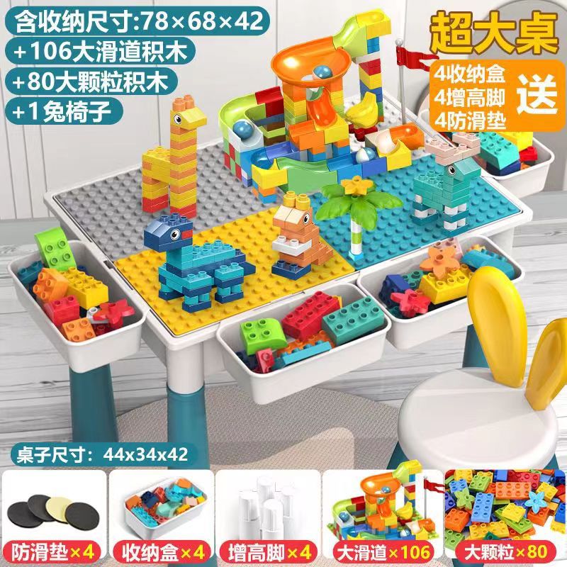 • 초대형 직사각형 테이블 + 토끼 의자 1개 + 슬라이드 142개 + DIY 163개 + 수납 공간 4개 [절묘한 색상 상자]