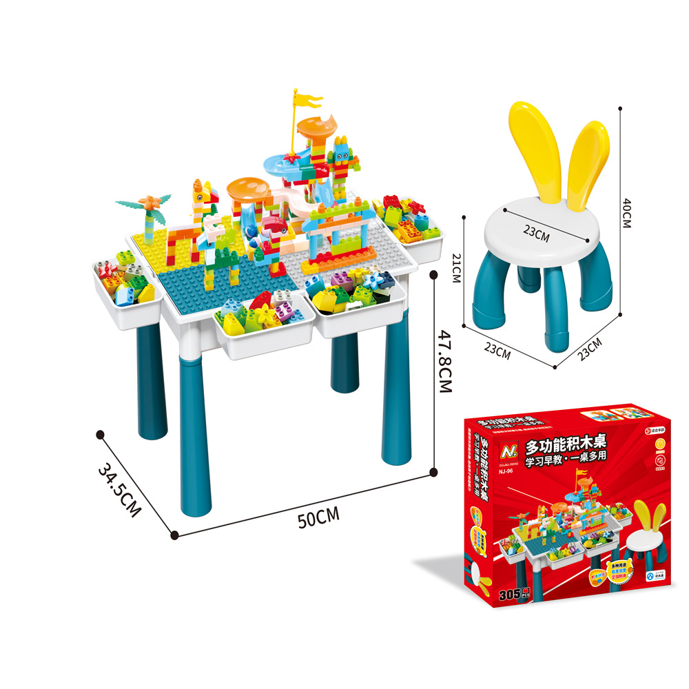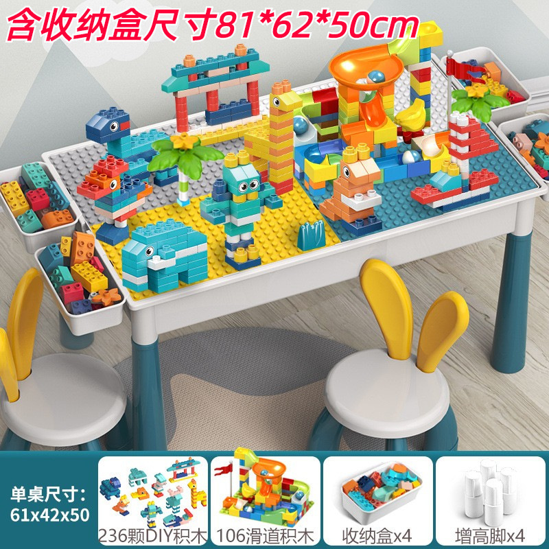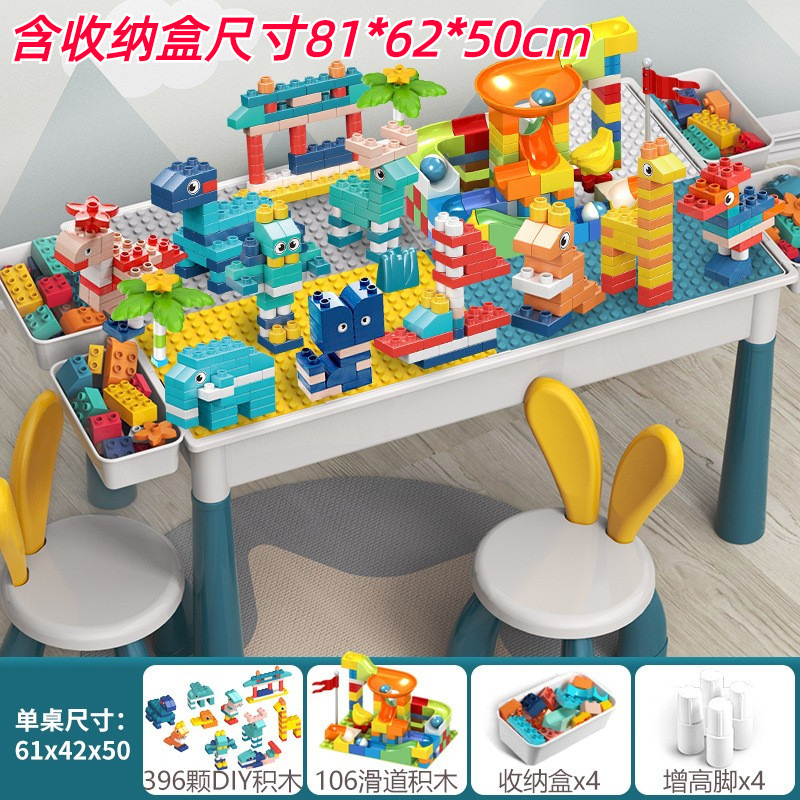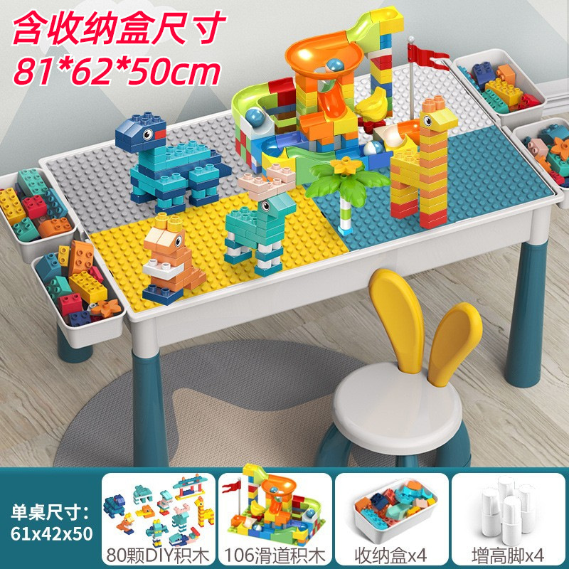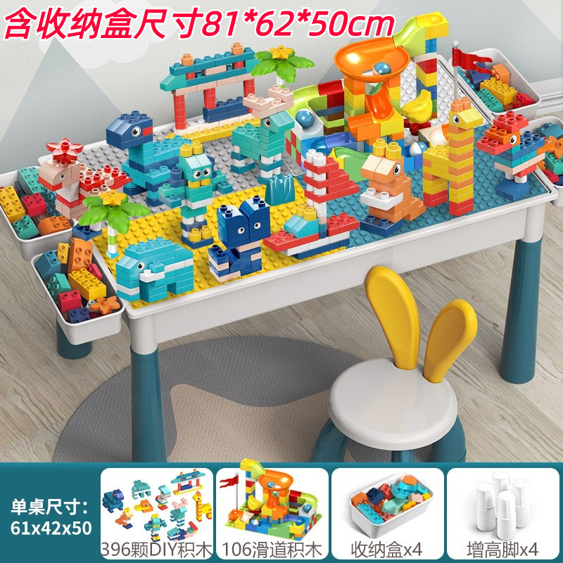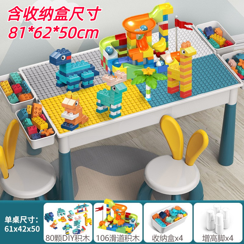 • 초대형 확장 빌딩 블록 테이블 + DIY 동물 300개 + 슬라이드 143개 + 토끼 의자 2개 + 높이 증가 수납 공간 4개