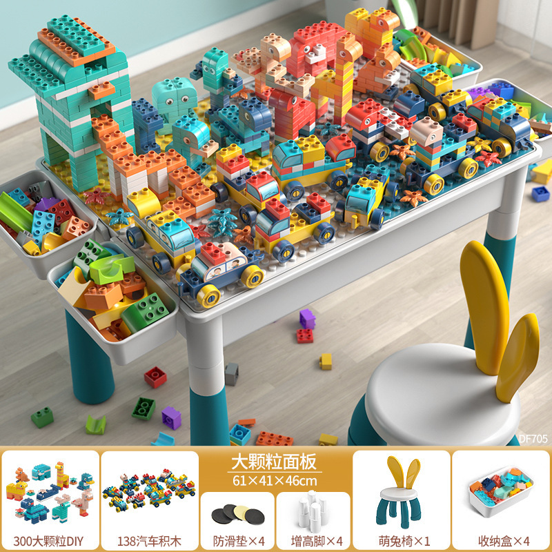 • 초대형 확장 빌딩 블록 테이블 + DIY 동물 300개 + 자동차 가방 138개 + 토끼 의자 2개 + 높이 증가 수납 공간 4개