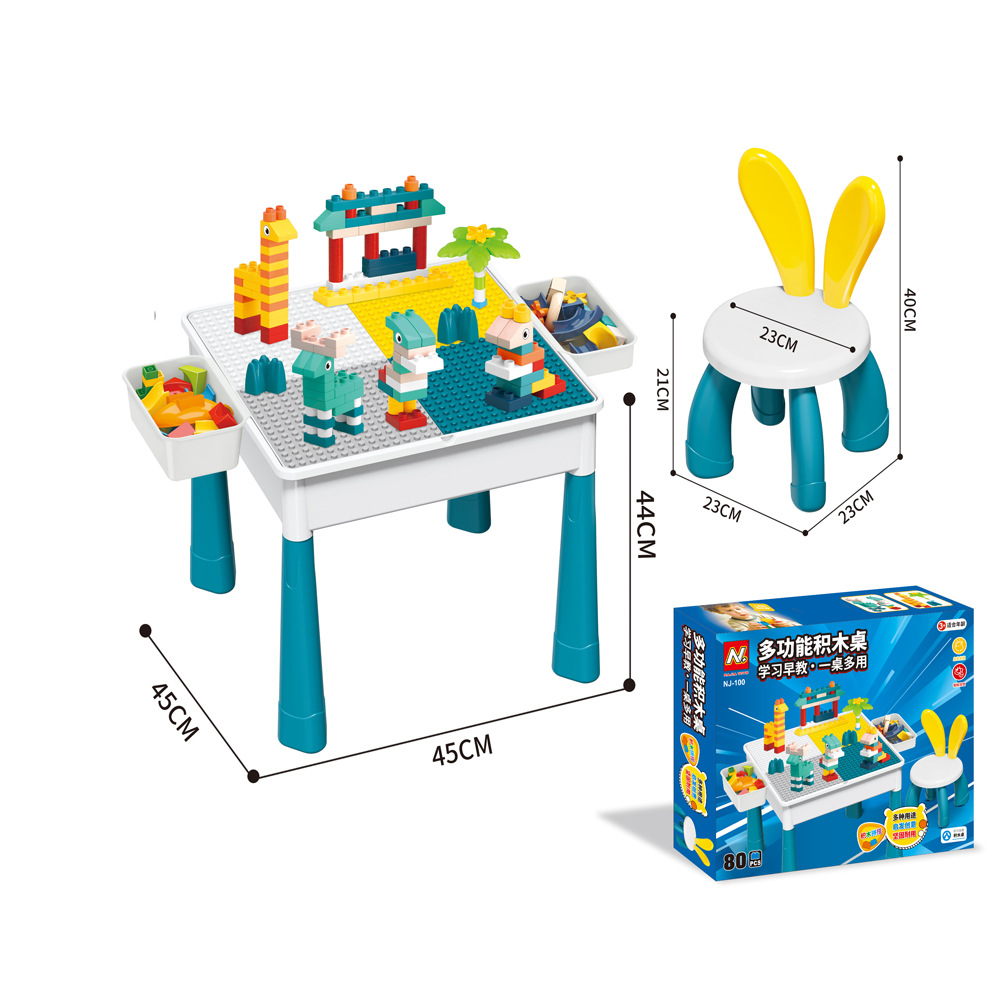 • 정사각형 테이블 45CM + 토끼 의자 1개 + DIY 80개 + 수납함 2개 [고급 컬러 박스 포장]