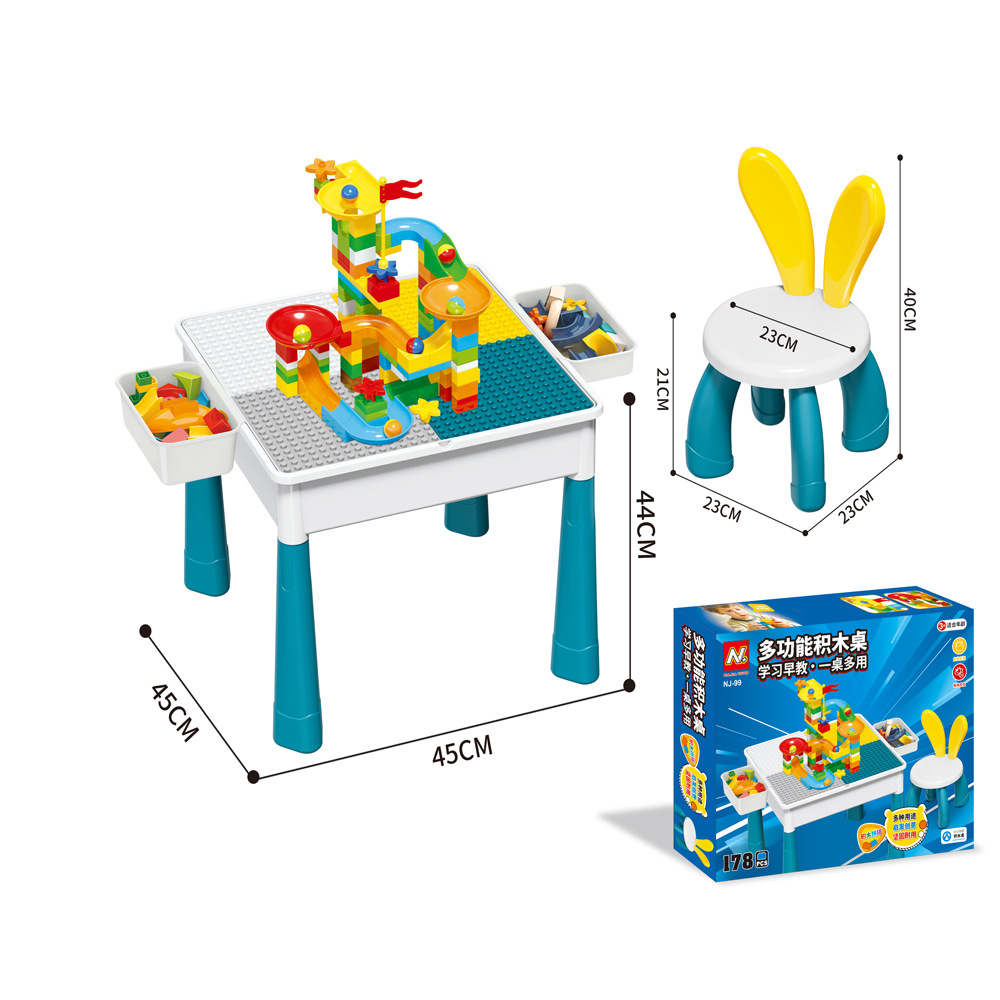• 사각 테이블 45CM + 토끼 의자 1개 + 슬라이드 178개 + 높이 증가 4개 및 수납 공간 4개 [절묘한 색상 상자]