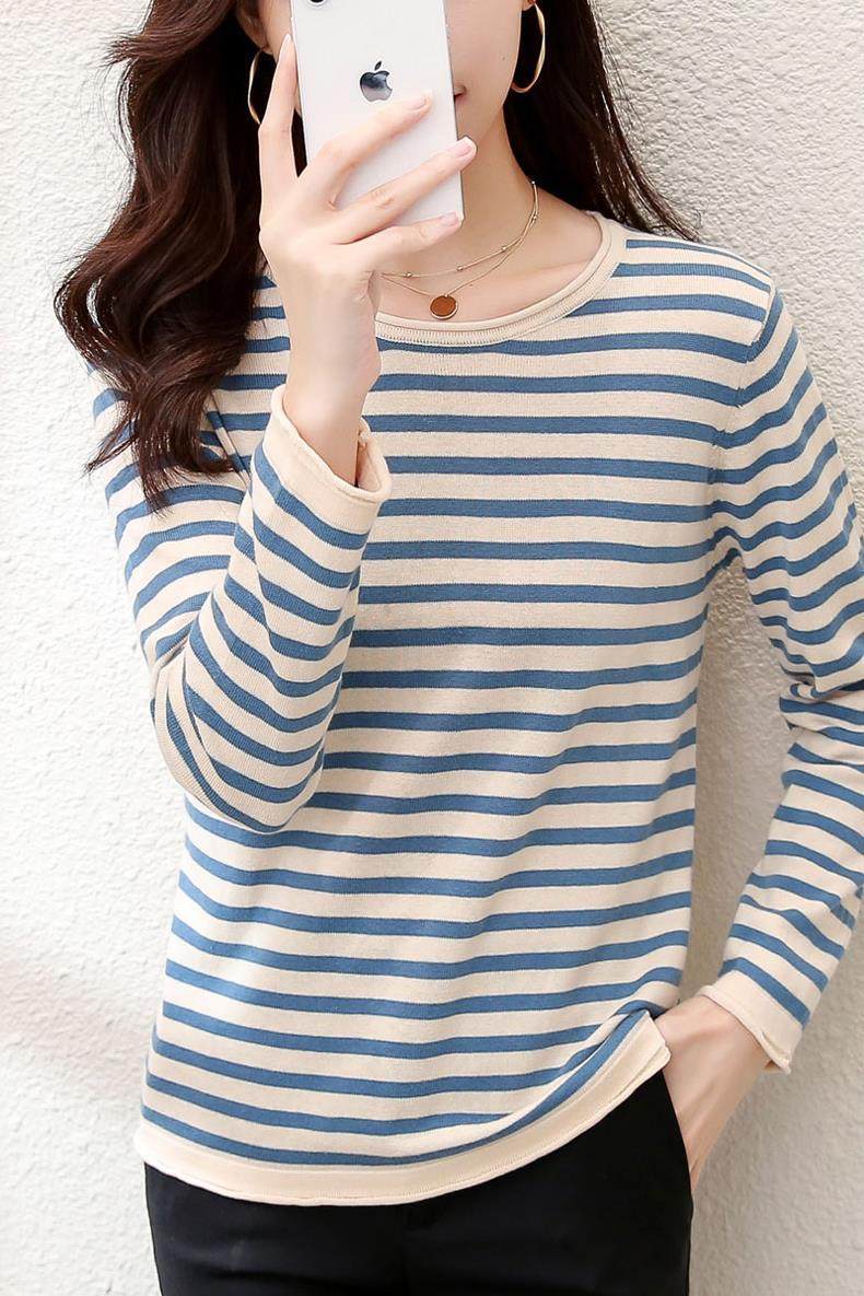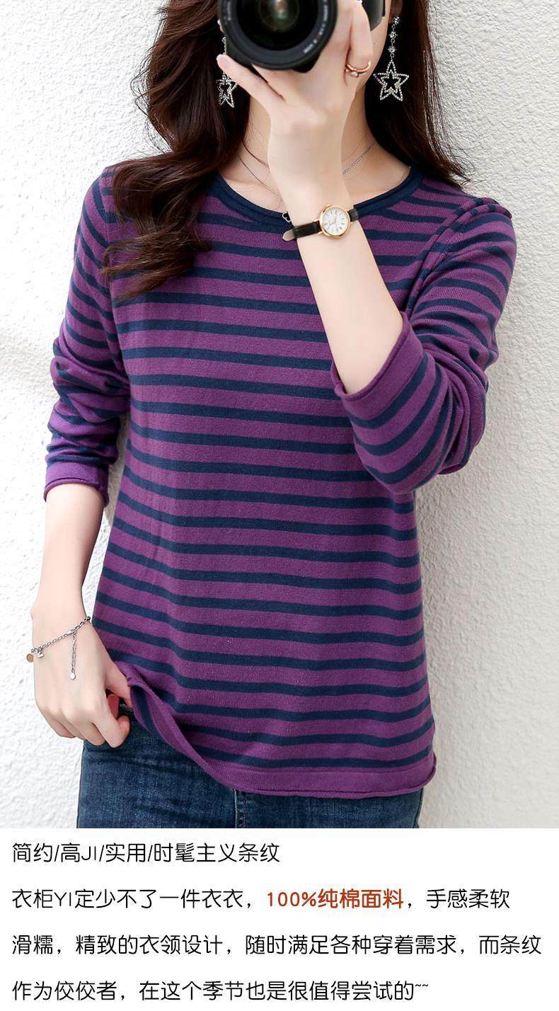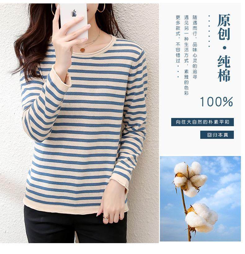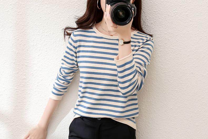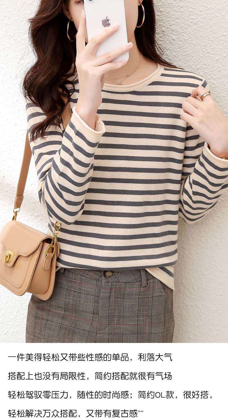 빗질 코튼 크루넥 스웨터 여성의 가을과 겨울 스트라이프 탑 내부 두꺼운 기본 셔츠 새로운 긴 소매 내부 셔츠스토어 가기