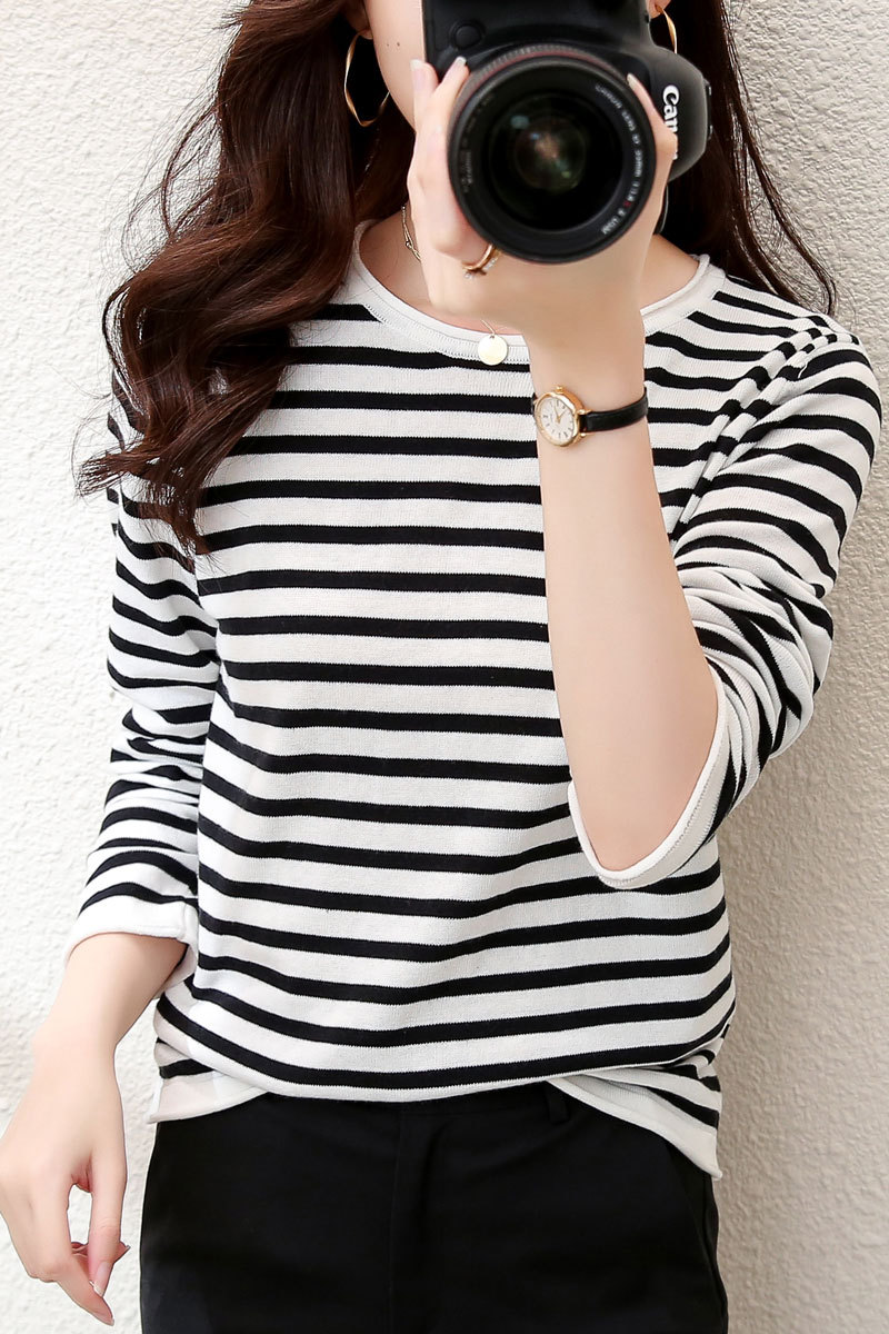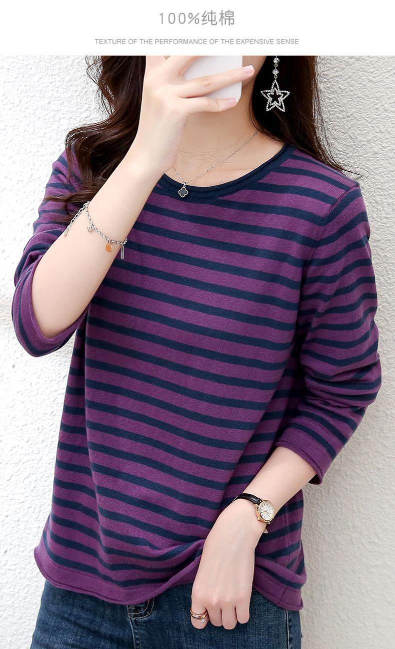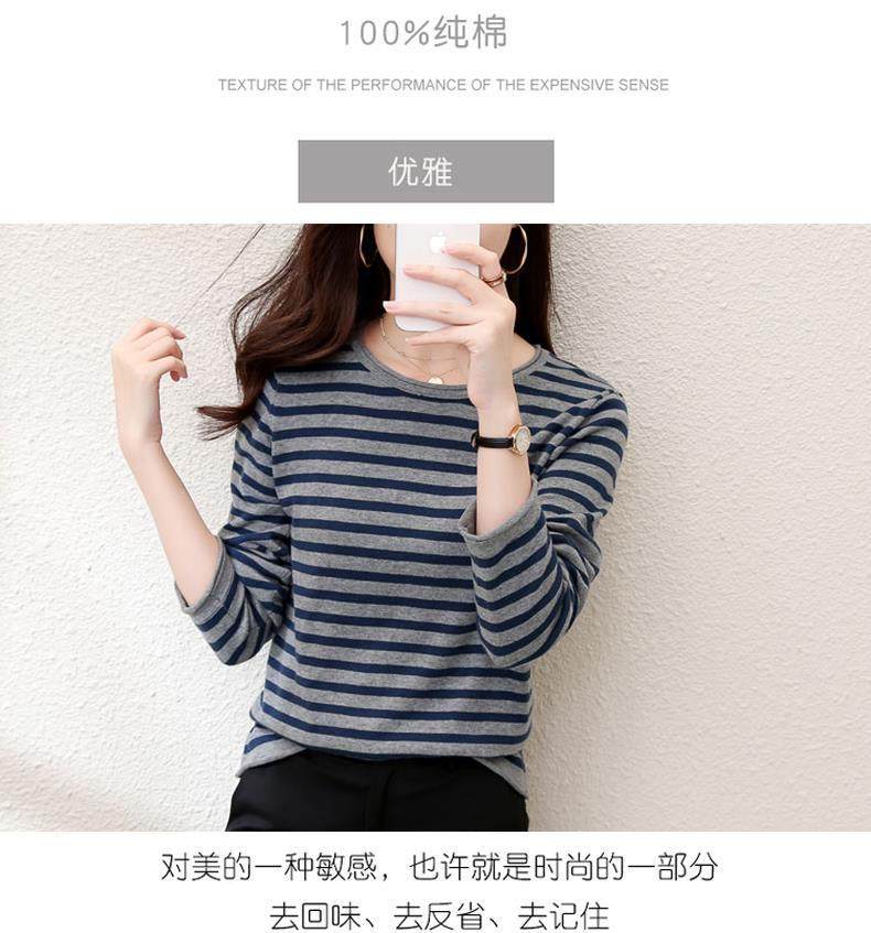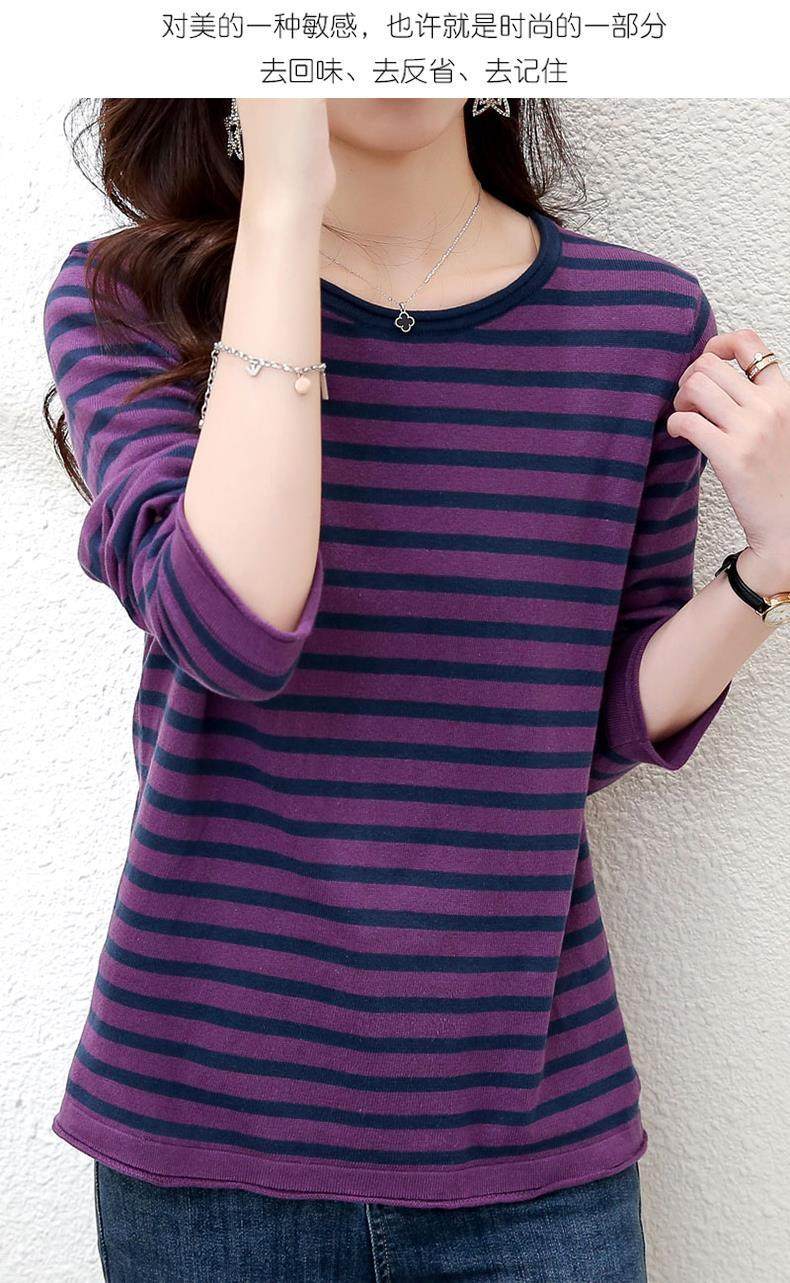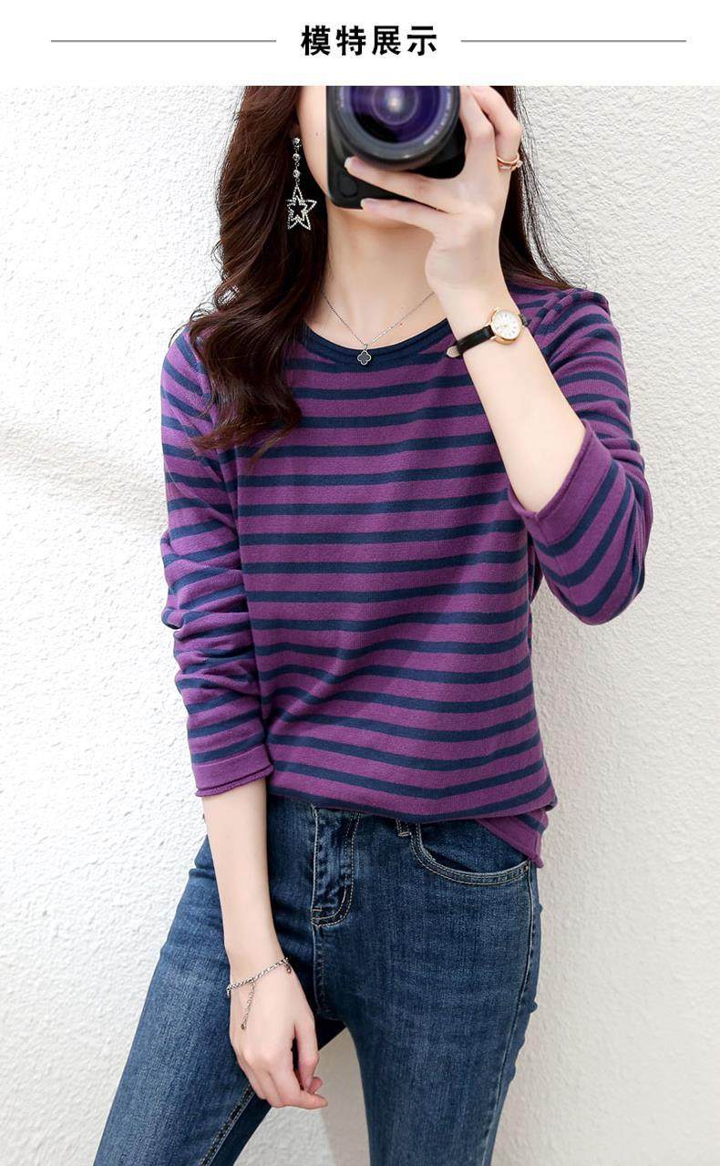 빗질 코튼 크루넥 스웨터 여성의 가을과 겨울 스트라이프 탑 내부 두꺼운 기본 셔츠 새로운 긴 소매 내부 셔츠스토어 가기