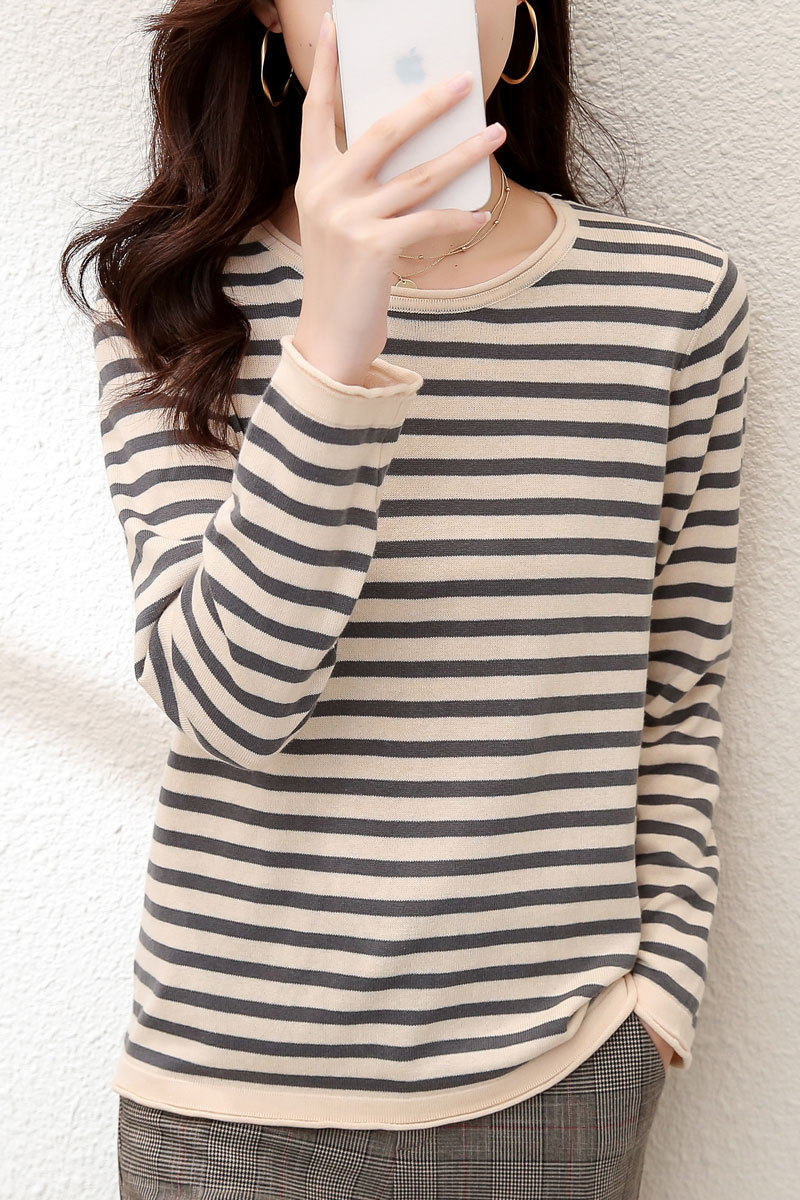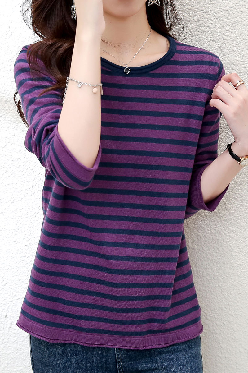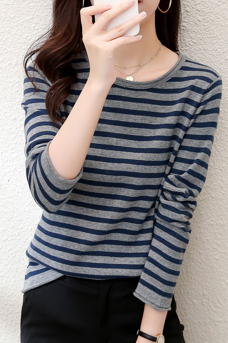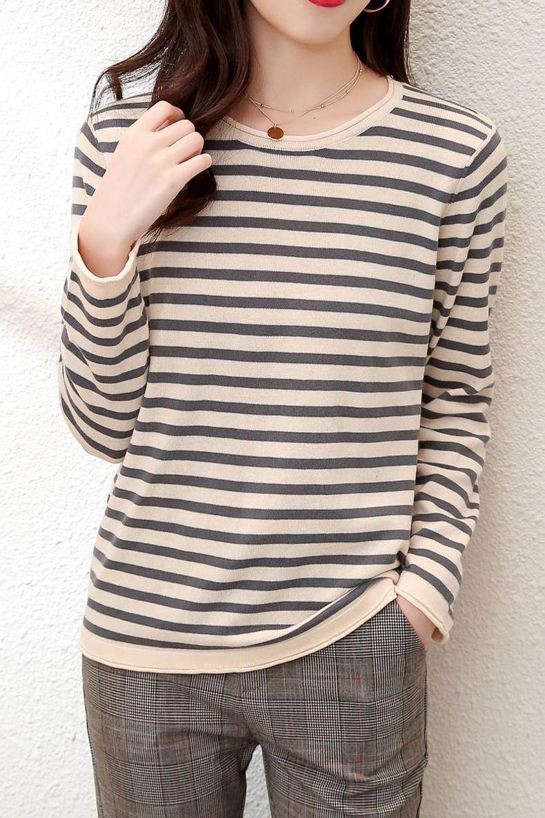 빗질 코튼 크루넥 스웨터 여성의 가을과 겨울 스트라이프 탑 내부 두꺼운 기본 셔츠 새로운 긴 소매 내부 셔츠스토어 가기