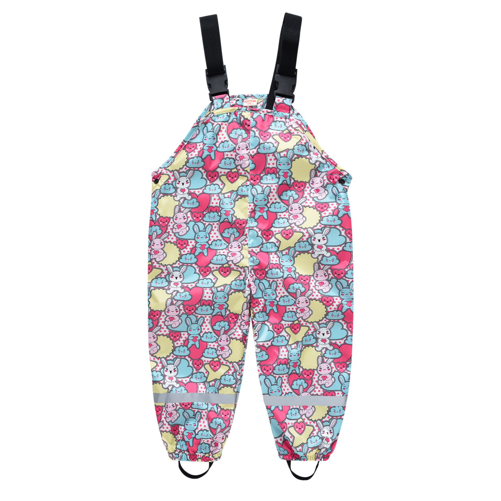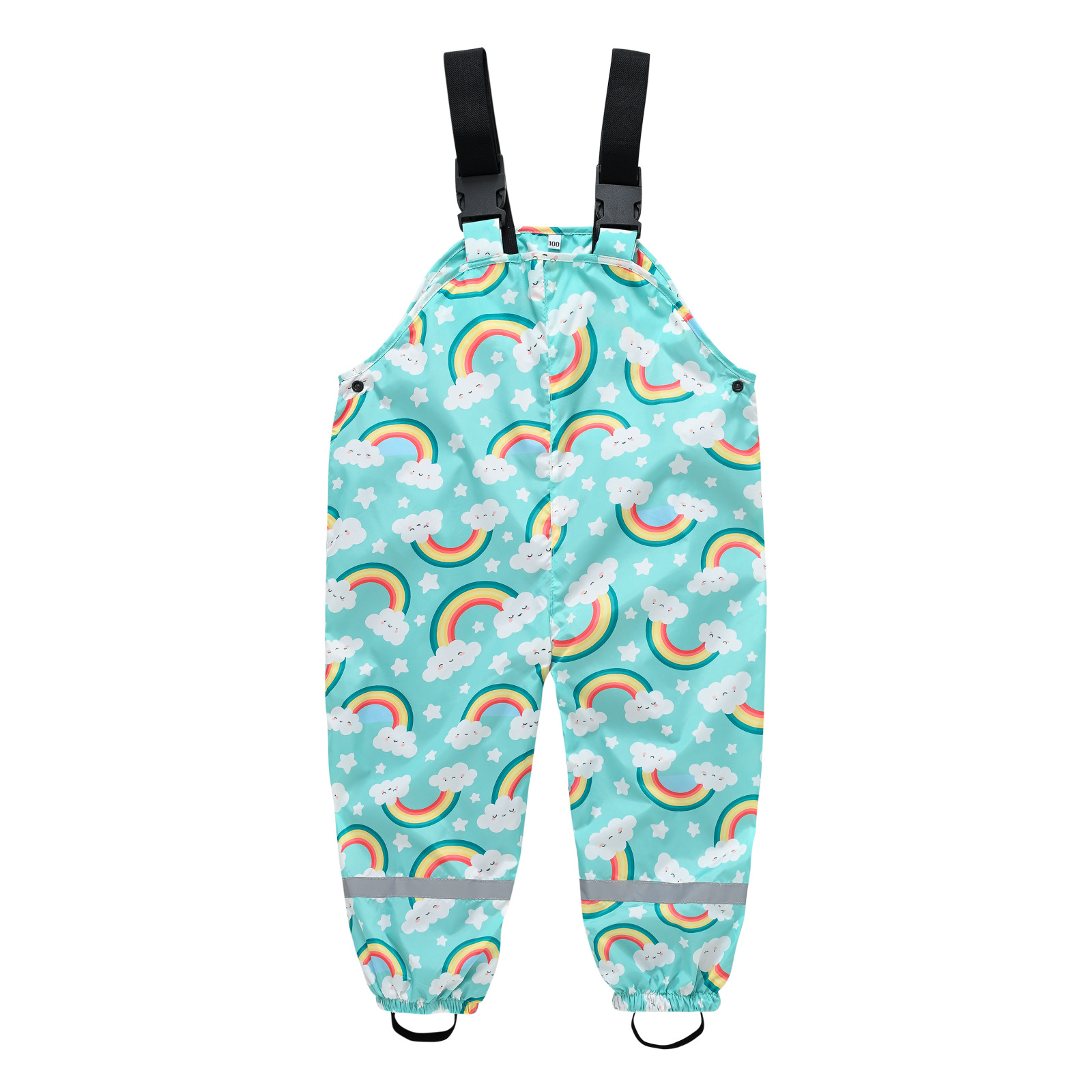 새로운 어린이 소년 소녀 레인 팬츠 어린이 귀여운 프린트 숄더 스트랩 조절 가능한 캐주얼 멜빵