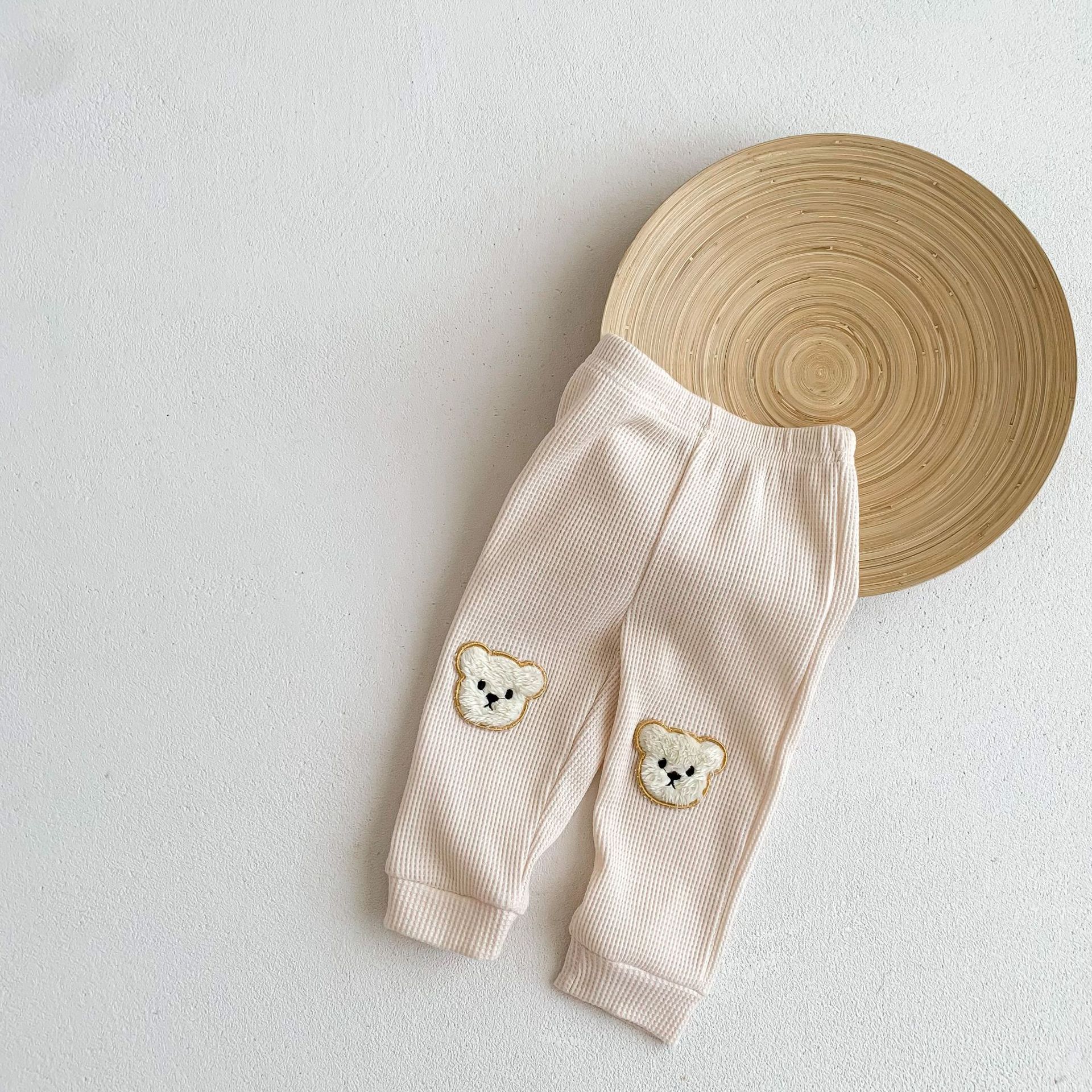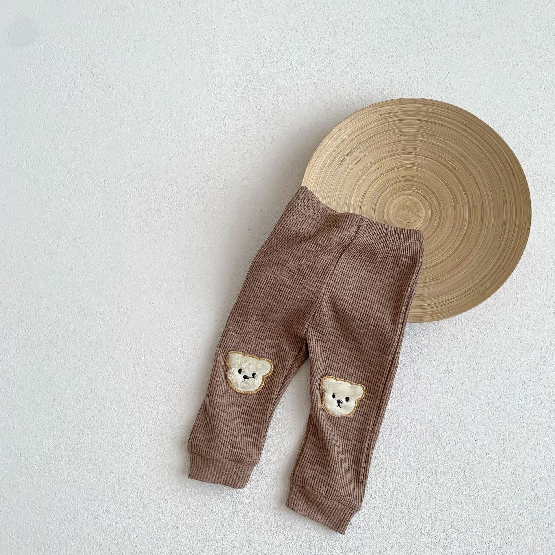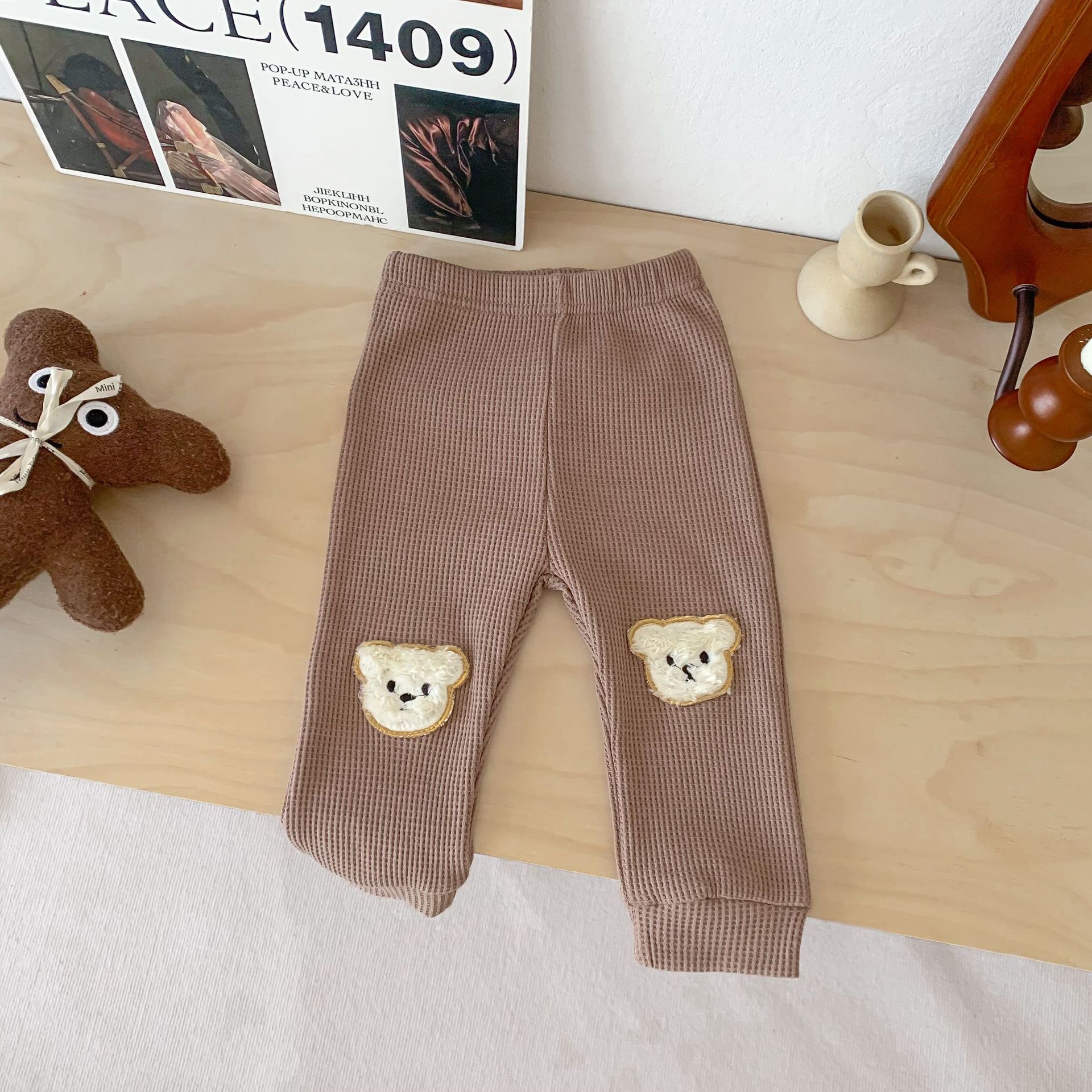 가을 한국 스타일 와플 곰돌이 바지 유아용 긴바지 귀엽고 패셔너블한 외출용 하렘 팬츠