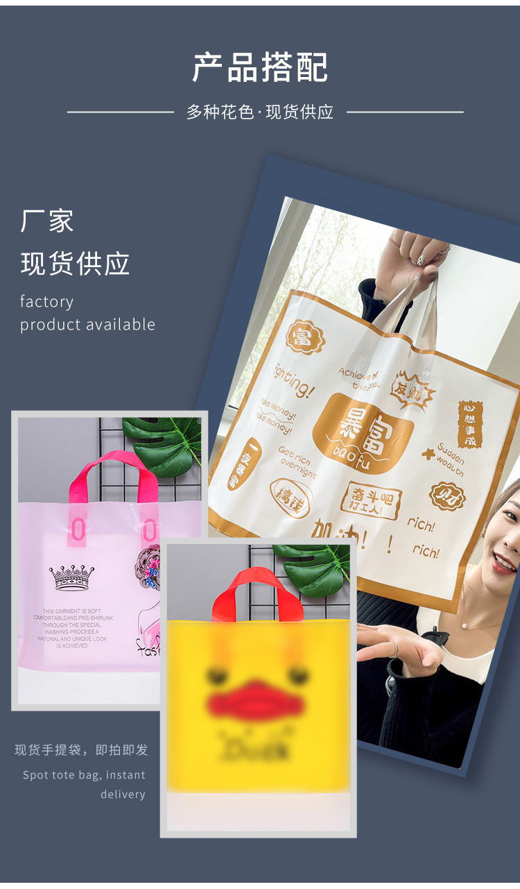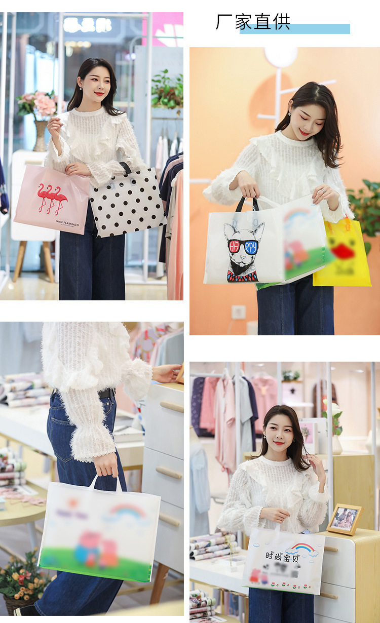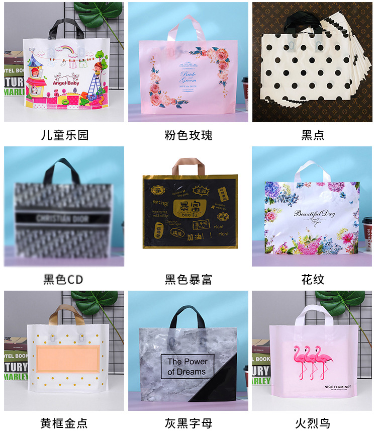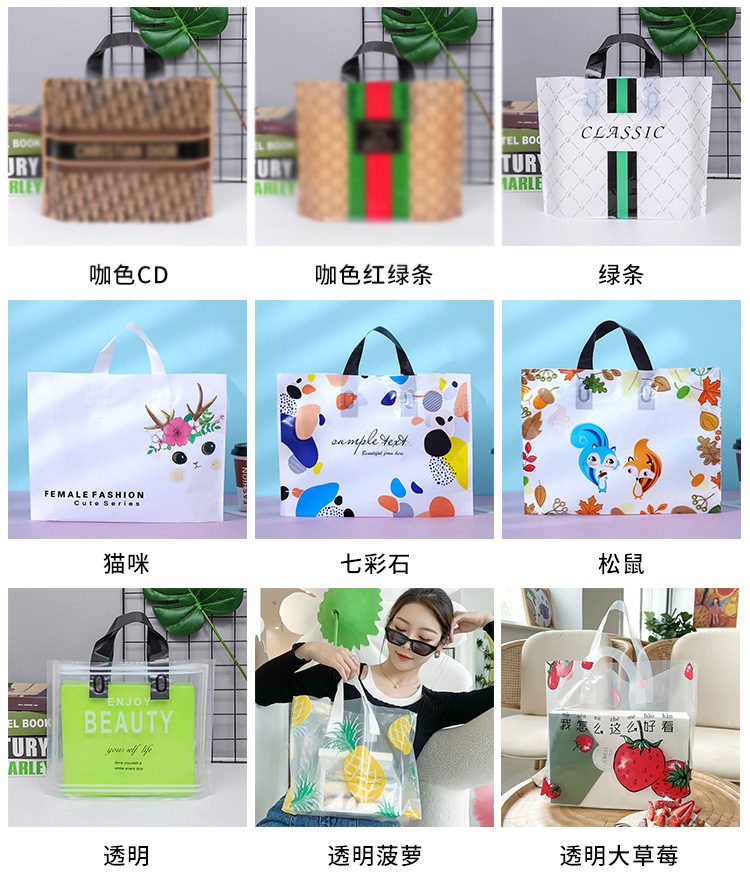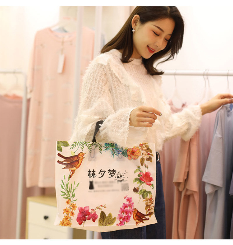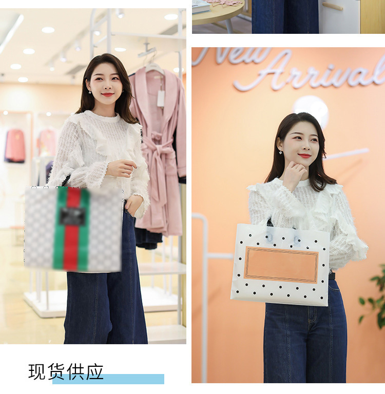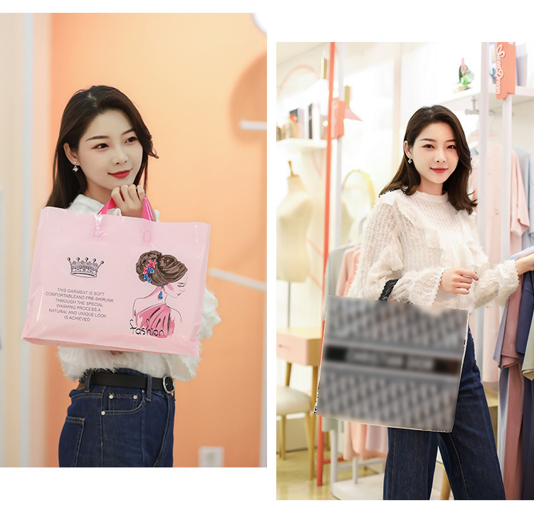 의류 매장 맞춤형 로고 핸드백, 말년 신상 두꺼운 의류 선물 가방, 플라스틱 인쇄 핸드백