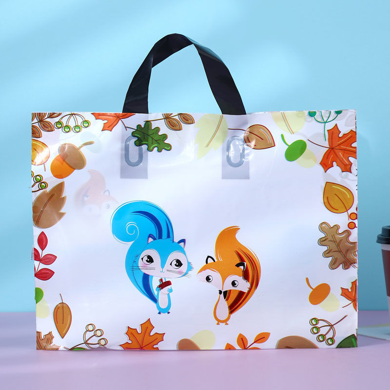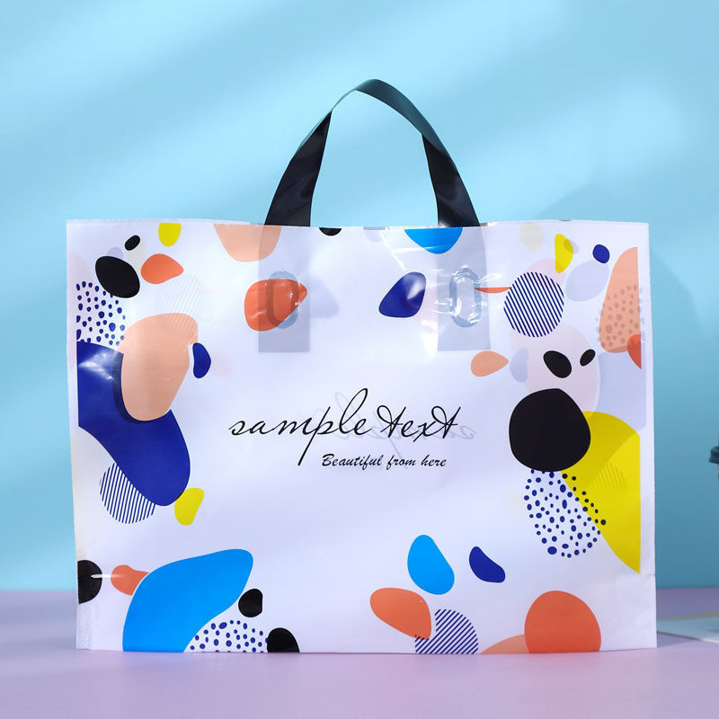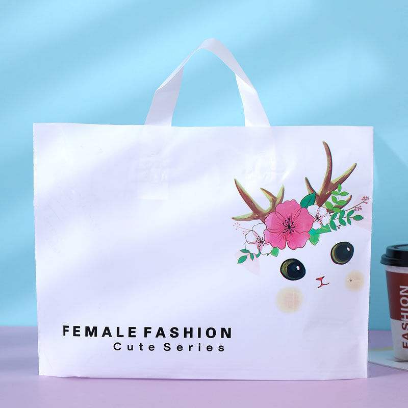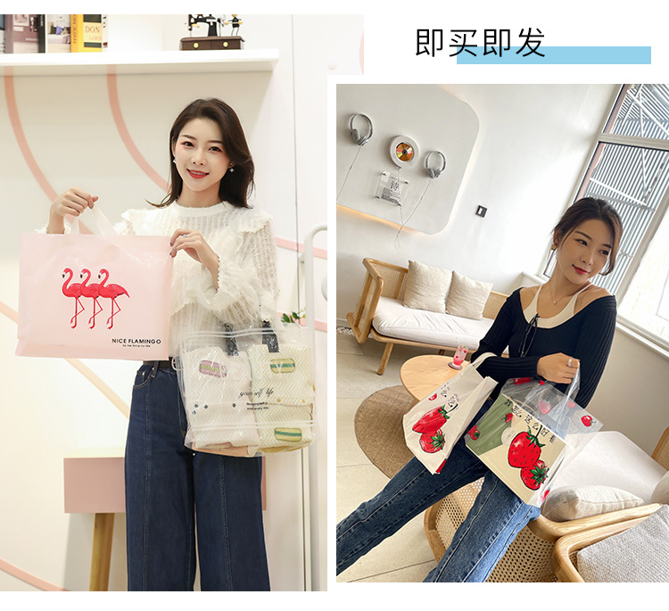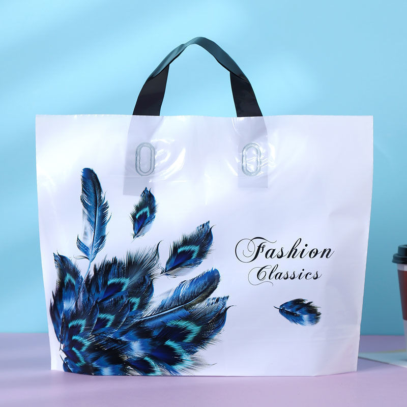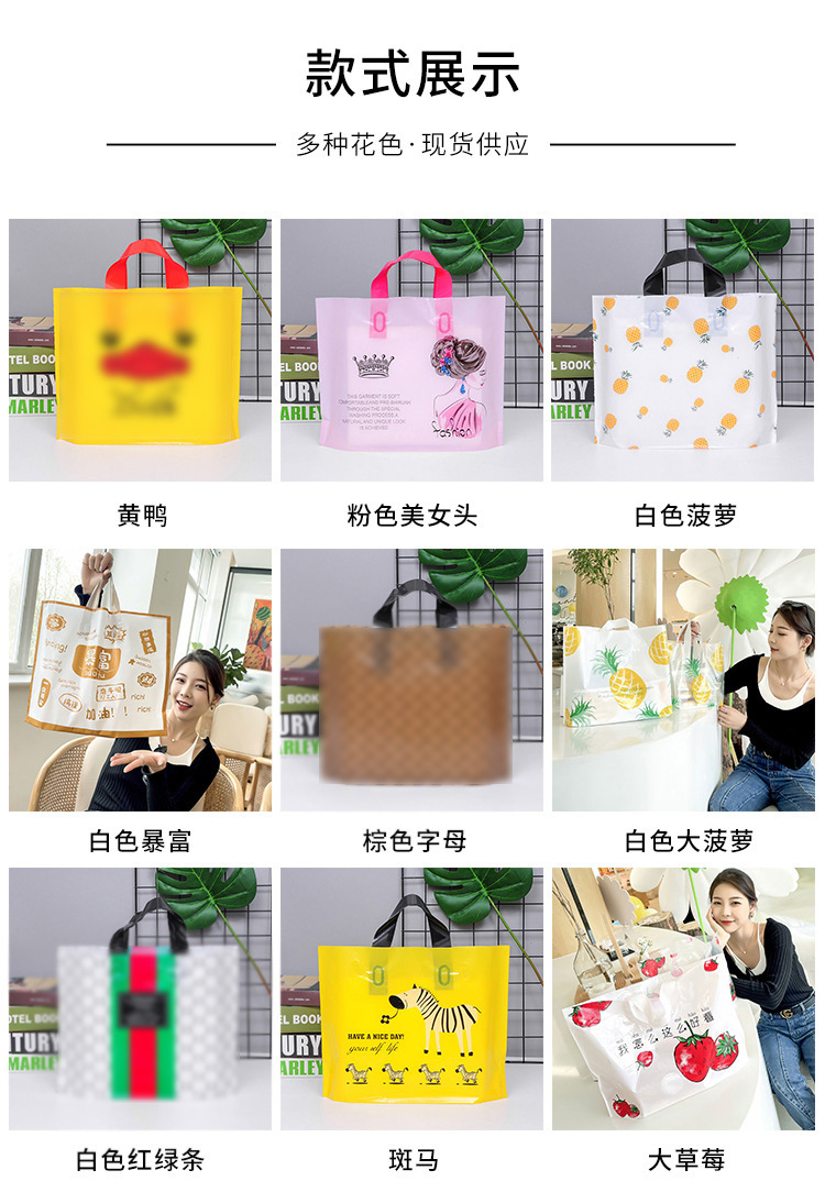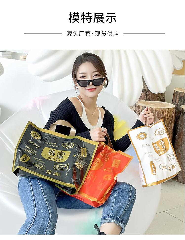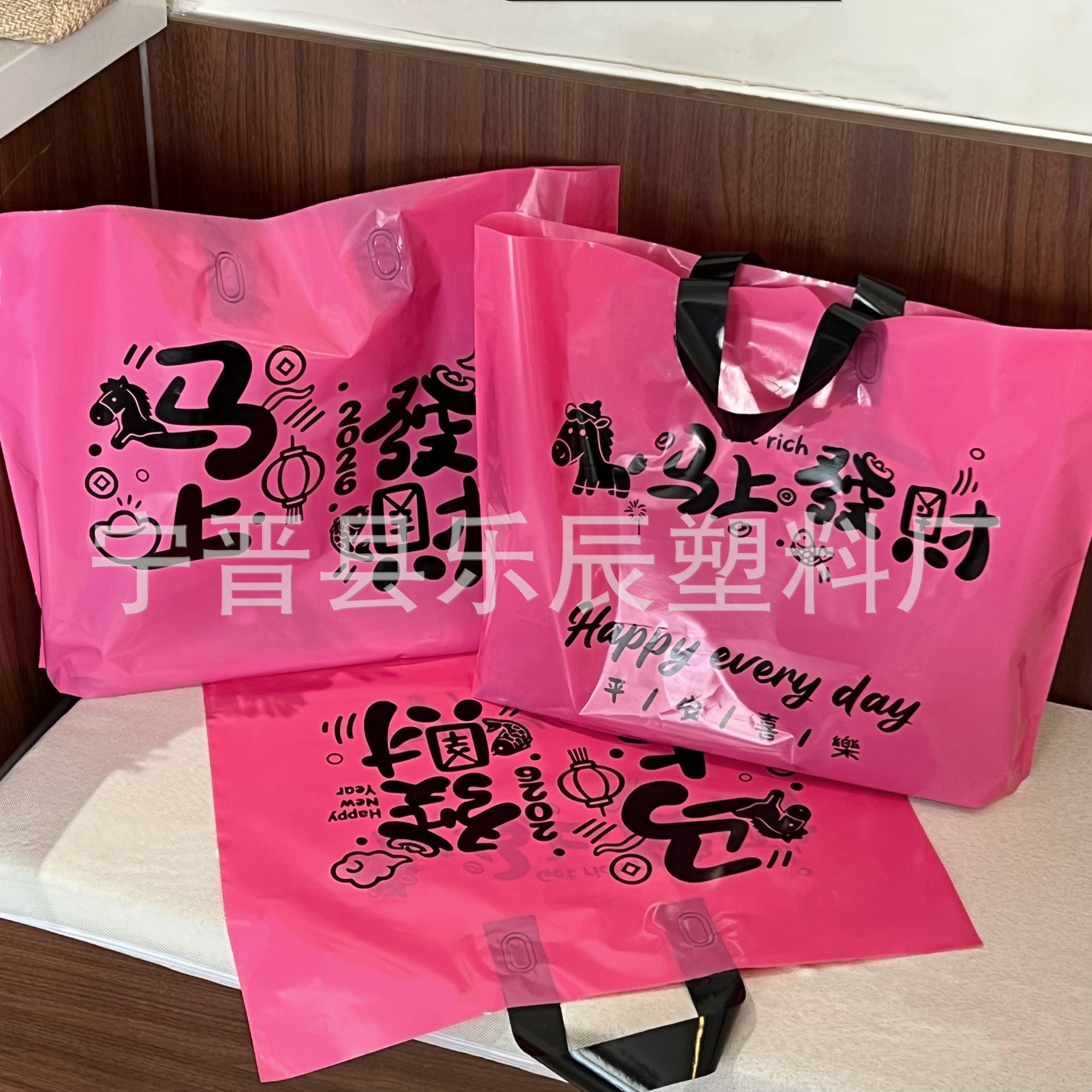 의류 매장 맞춤형 로고 핸드백, 말년 신상 두꺼운 의류 선물 가방, 플라스틱 인쇄 핸드백