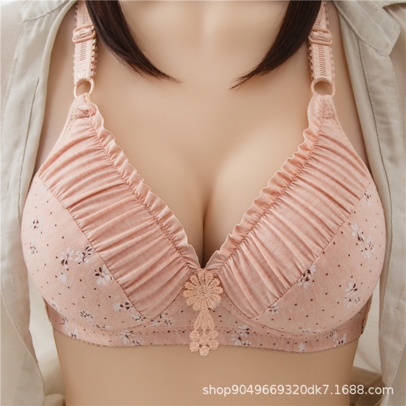 새로운 자카드 중소 가슴 속옷 여성의 인쇄 편안한 통기성 비 자기 철 소녀 브래지어 반지 없는 브래지어 여성용