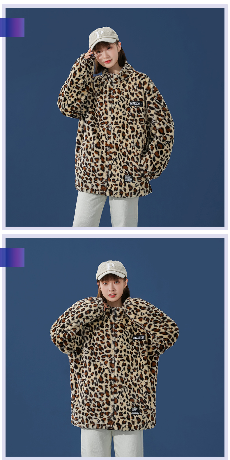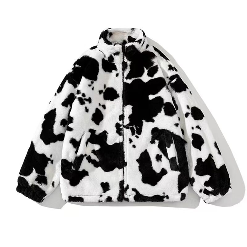 2021 가을과 겨울 새로운 남성 패션 브랜드 느슨한 짧은 플러시 레오파드 무늬 재킷 면 패딩 코트 면 패딩 재킷 커플 스탠드 칼라 코트스토어 가기